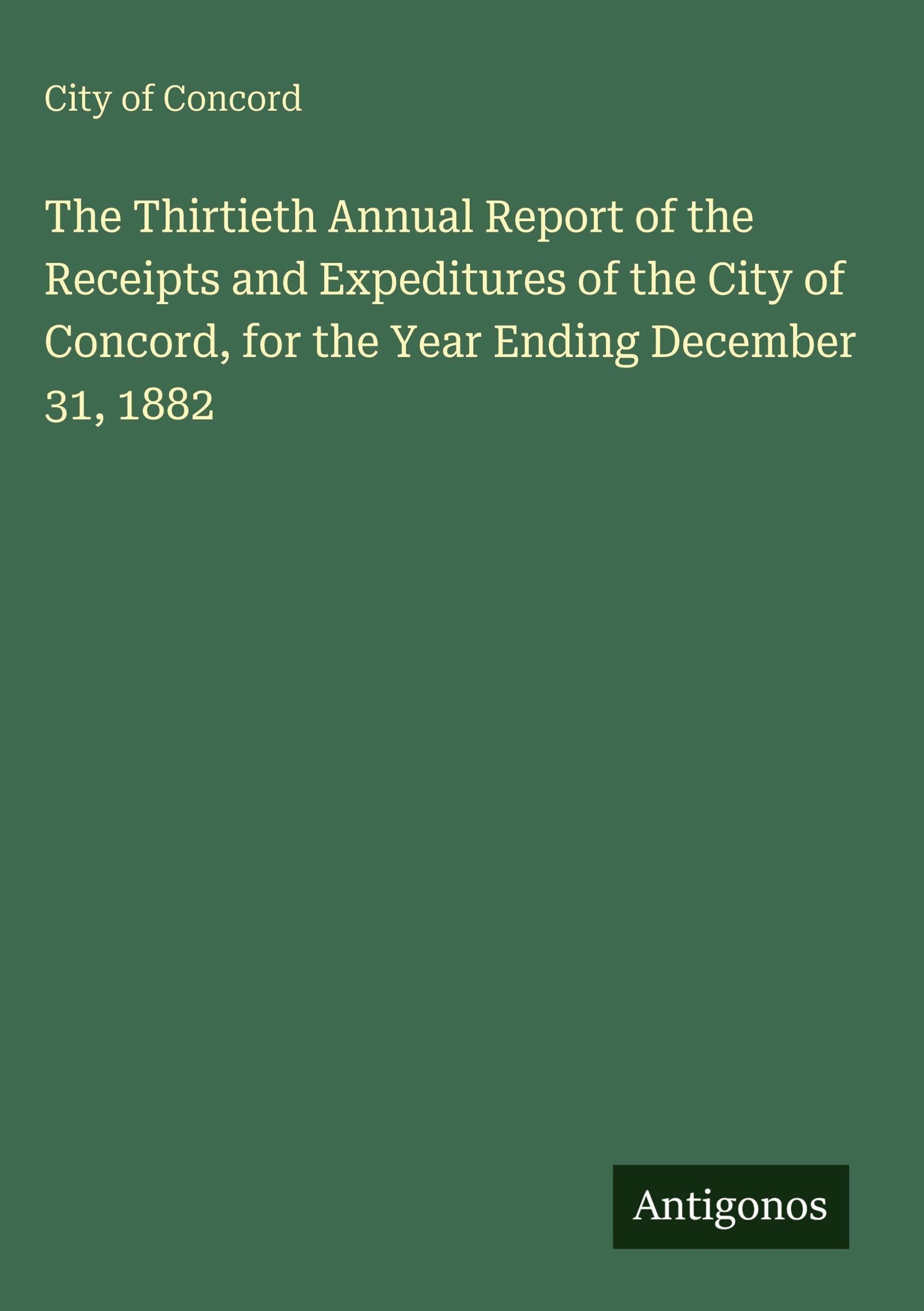 The Thirtieth Annual Report of the Receipts and Expeditures of the City of Concord, for the Year Ending December 31, 1882