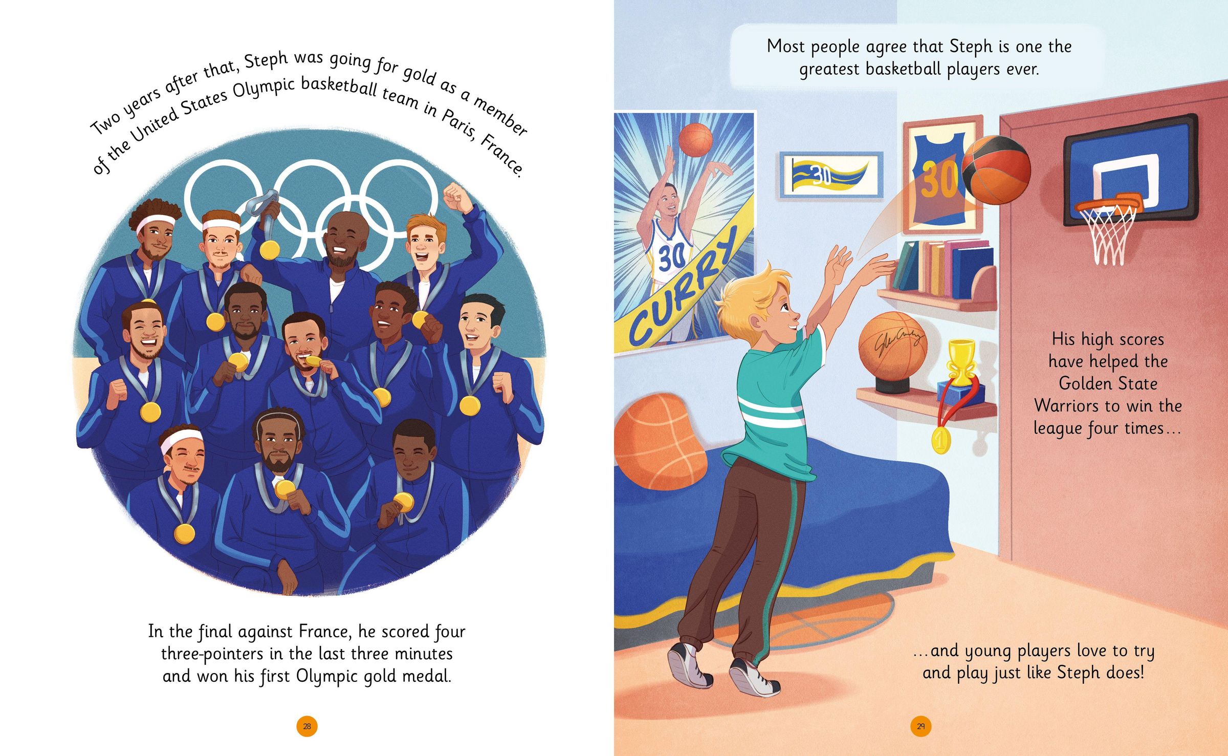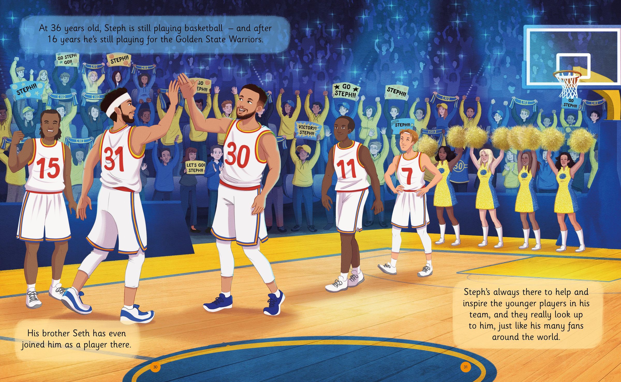 This exciting book is filled with stories and pictures about Steph's life. Whether it's his spectacular three-pointers, leadership on the court, or his impact off the field, Steph's talents shine through. But it's his humility, perseverance, and inspiring work ethic that have captured the hearts of fans worldwide, encouraging us to dream big and work hard.