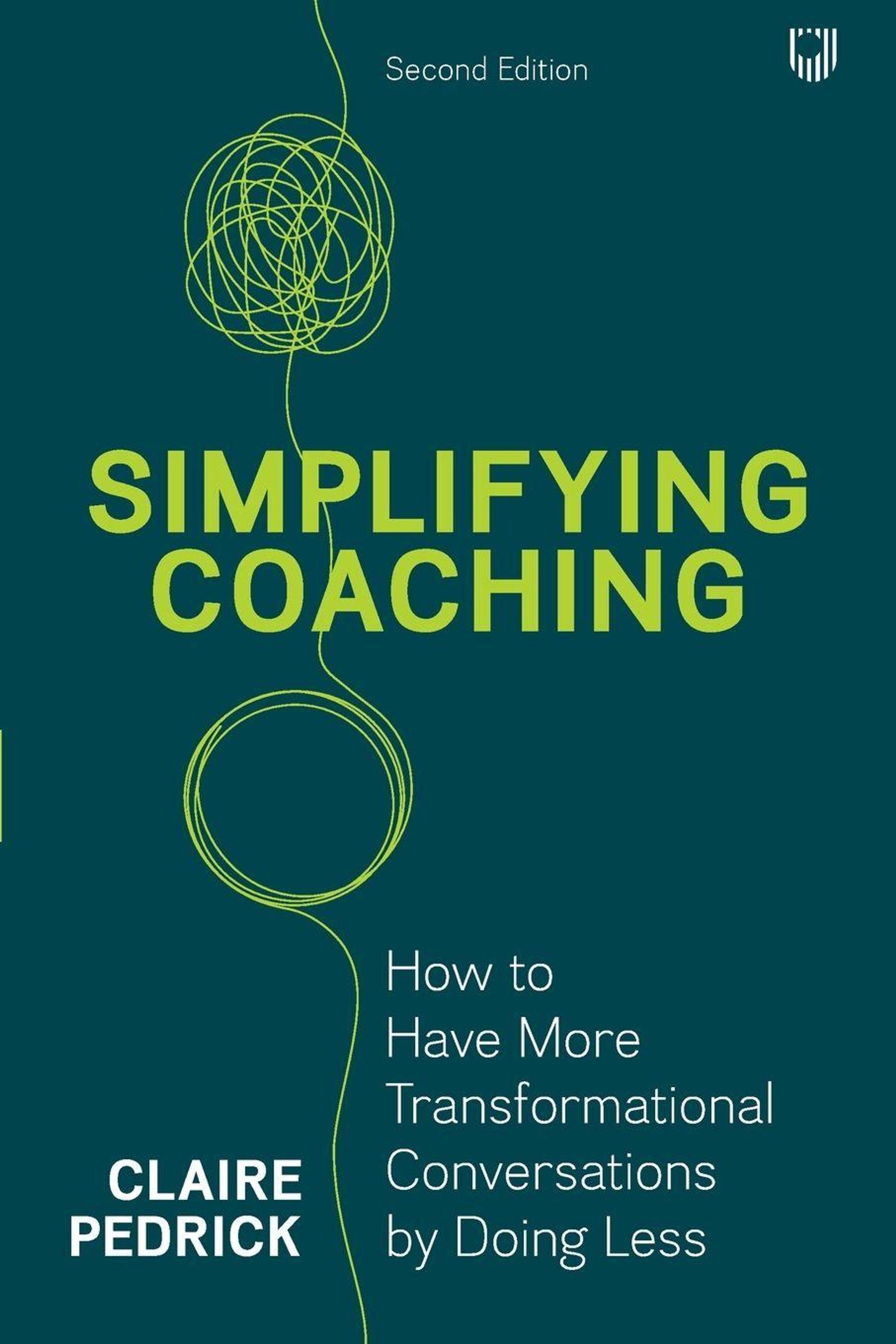 Second Edition. SIMPLIFYING COACHING. CLAIRE PEDRICK. Text mit grafischen grünen Linien, die abstrakte Muster bilden., Buch