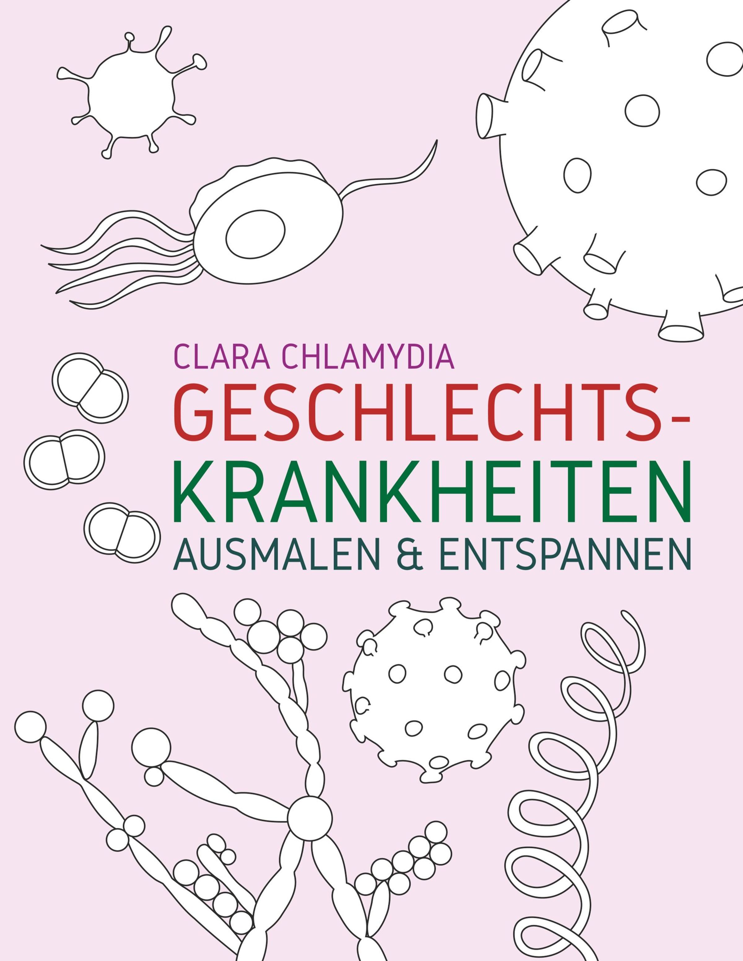 In Verbindung mit Sexualität kommt auch immer wieder das Thema Geschlechtskrankheiten auf. Nachdem laut neuesten Studien die Geschlechtskrankheiten aufgrund der sozialen Medien ständig zunehmen, möchte Clara Chlamydia ein größeres Bewusstsein schaffen. Aus diesem Grund hat sie ein Malbuch kreiert, in dem man die bekanntesten und am häufigsten auftretenden Geschlechtskrankheiten ausmalen kann. In diesem Malbuch finden sich Geschlechtskrankheiten wie Chlamydien, Genitalwarzen, Hefepilz, Hepatitis B, Herpes, HIV, Syphilis, Trichomonaden sowie Tripper. Ein entspannter Malspaß für Aufgeklärte, Interessierte und Betroffene.