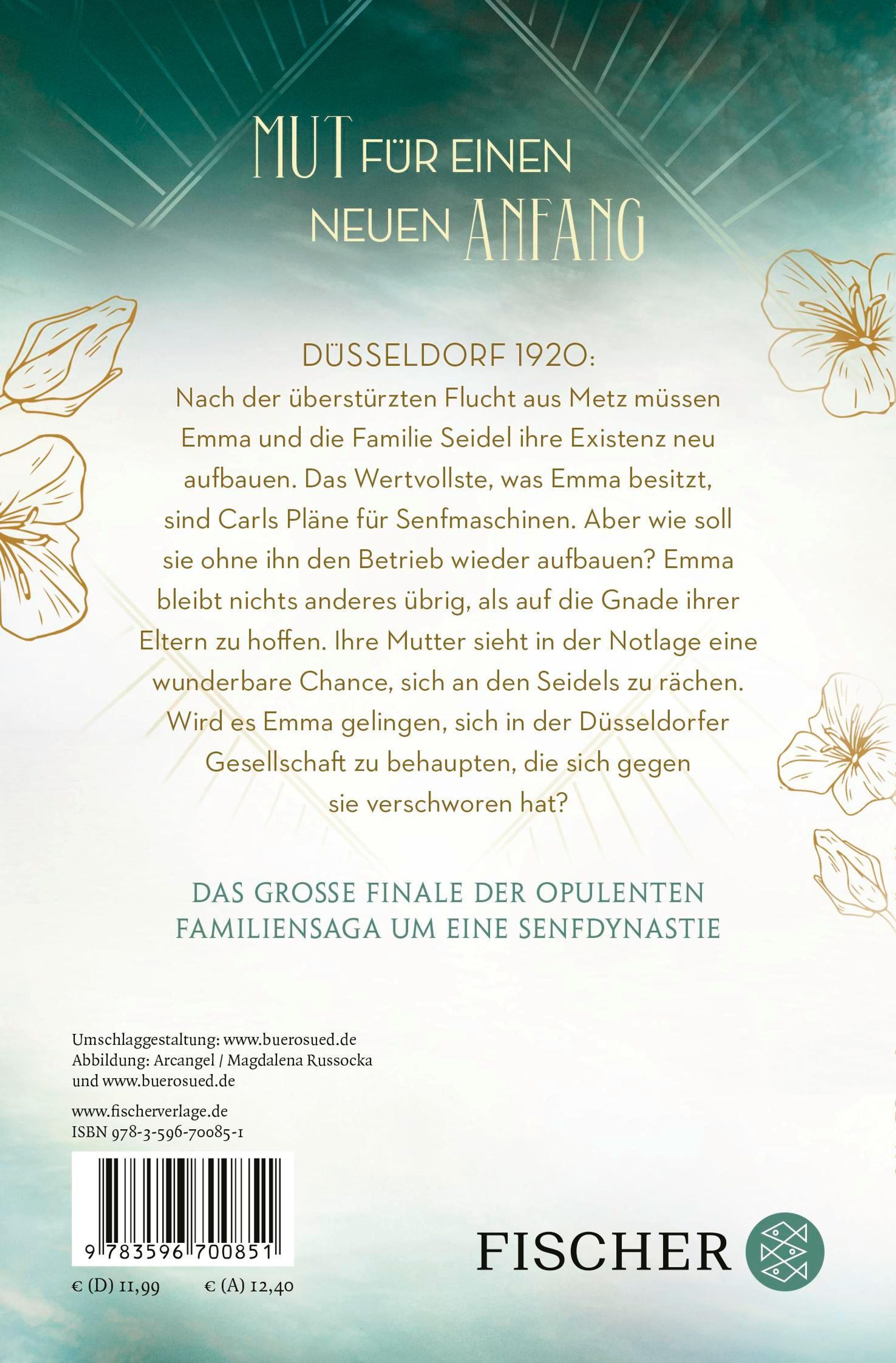 Düsseldorf 1920: Nach der überstürzten Flucht aus Metz müssen Emma und die Familie Seidel ihre Existenz neu aufbauen. Doch als Flüchtlinge sind sie nirgends gern gesehen. Das Wertvollste, was Emma besitzt, sind Carls Pläne für Senfmaschinen. Aber wie soll sie ohne ihn den Betrieb wieder aufbauen? Emma bleibt nichts anderes übrig, als auf die Gnade ihrer Eltern zu hoffen. Ihre Mutter sieht in der Notlage der Seidels eine wunderbare Chance, sich an der Familie zu rächen. Wird es Emma gelingen, sich in der Gesellschaft zu behaupten, die sich gegen sie verschworen hat? Ihre Lage scheint aussichtslos zu sein. Bis jemand aus ihrer Vergangenheit wieder auftaucht ...