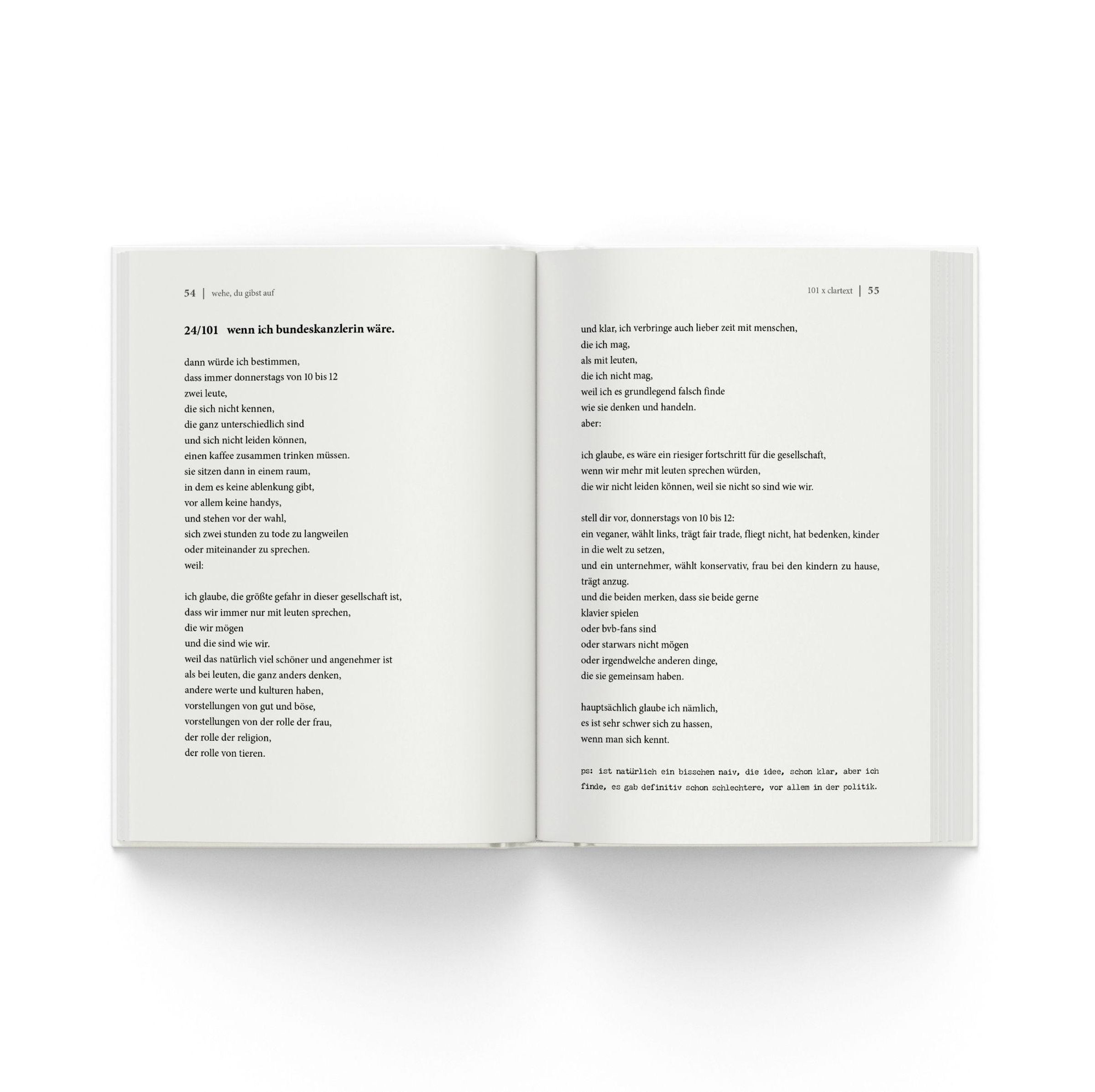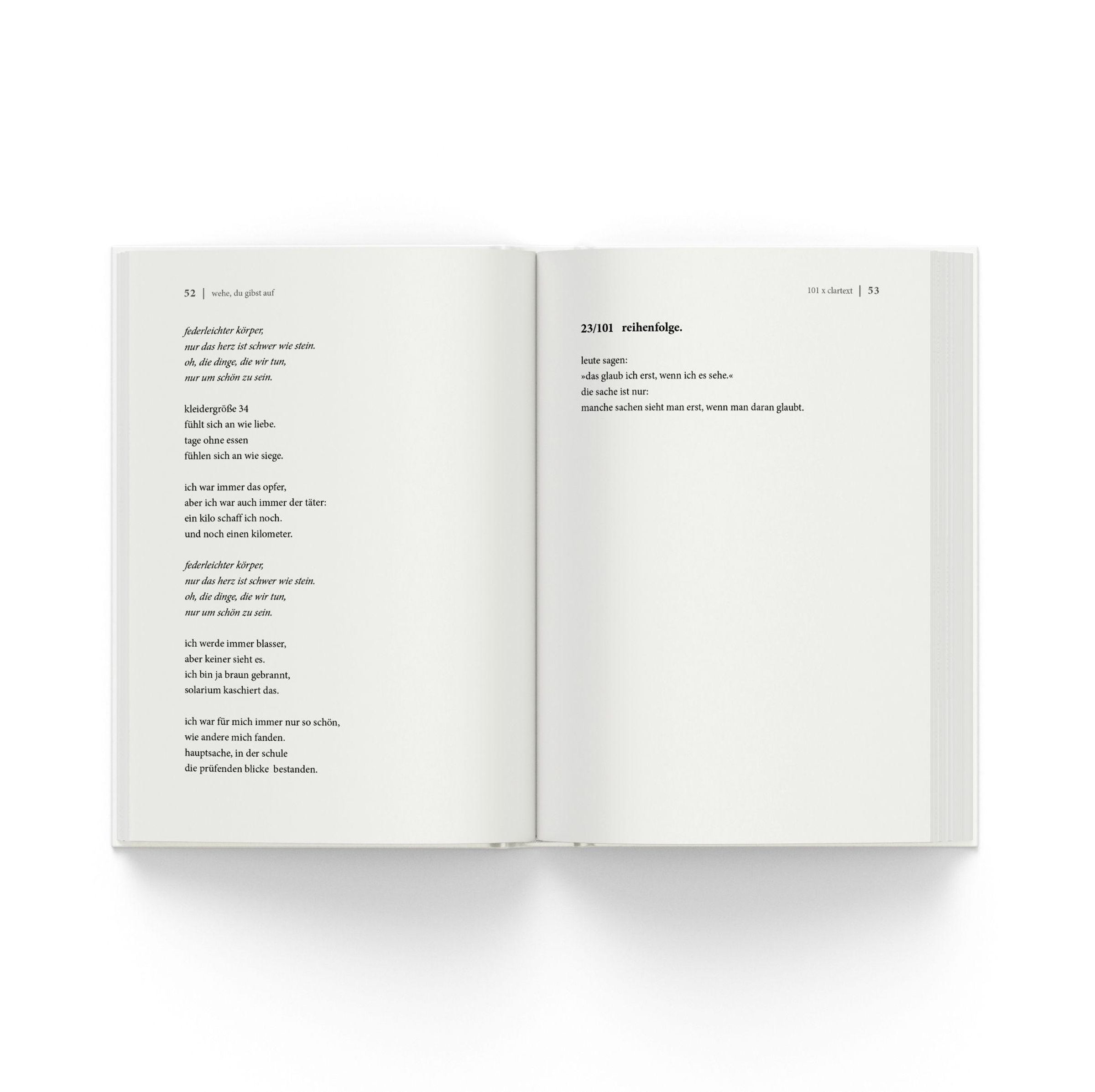 In diesem Buch erwarten dich 101 schonungslos ehrliche und tief verletzliche Texte über (Selbst-)Liebe und Schönheitsideale, über Politik und Herzbruch, über Einsamkeit und Hoffnung. Clara Lösel, Literaturpreisträgerin und Instagramphänomen, spricht das aus, was so viele bewegt und sich trotzdem niemand zu sagen traut, und lässt dich dadurch fühlen und wachsen.