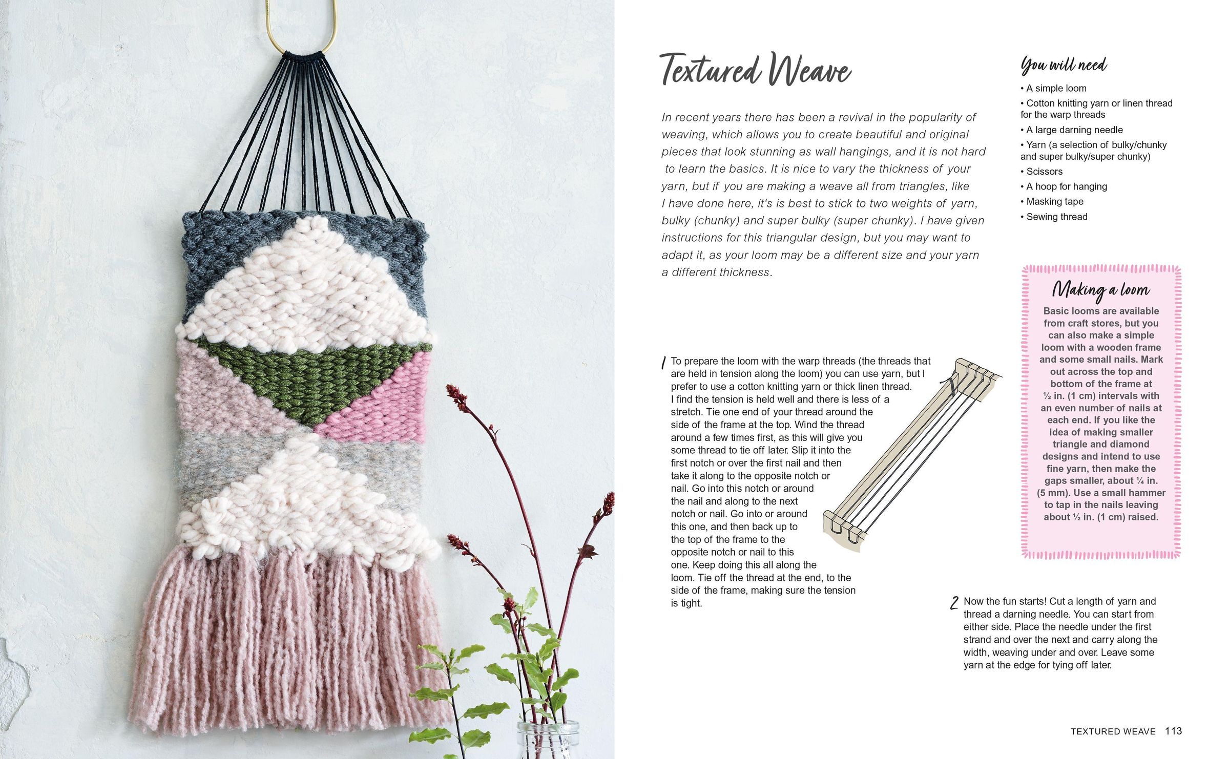There are also gorgeous gifts to make for children, including a fluffy koala bag and a scallop-edged baby quilt. Finally, choose from beautiful wall art projects including an Art Deco wall hanging, a textured weave, and coral embroidery hoops.