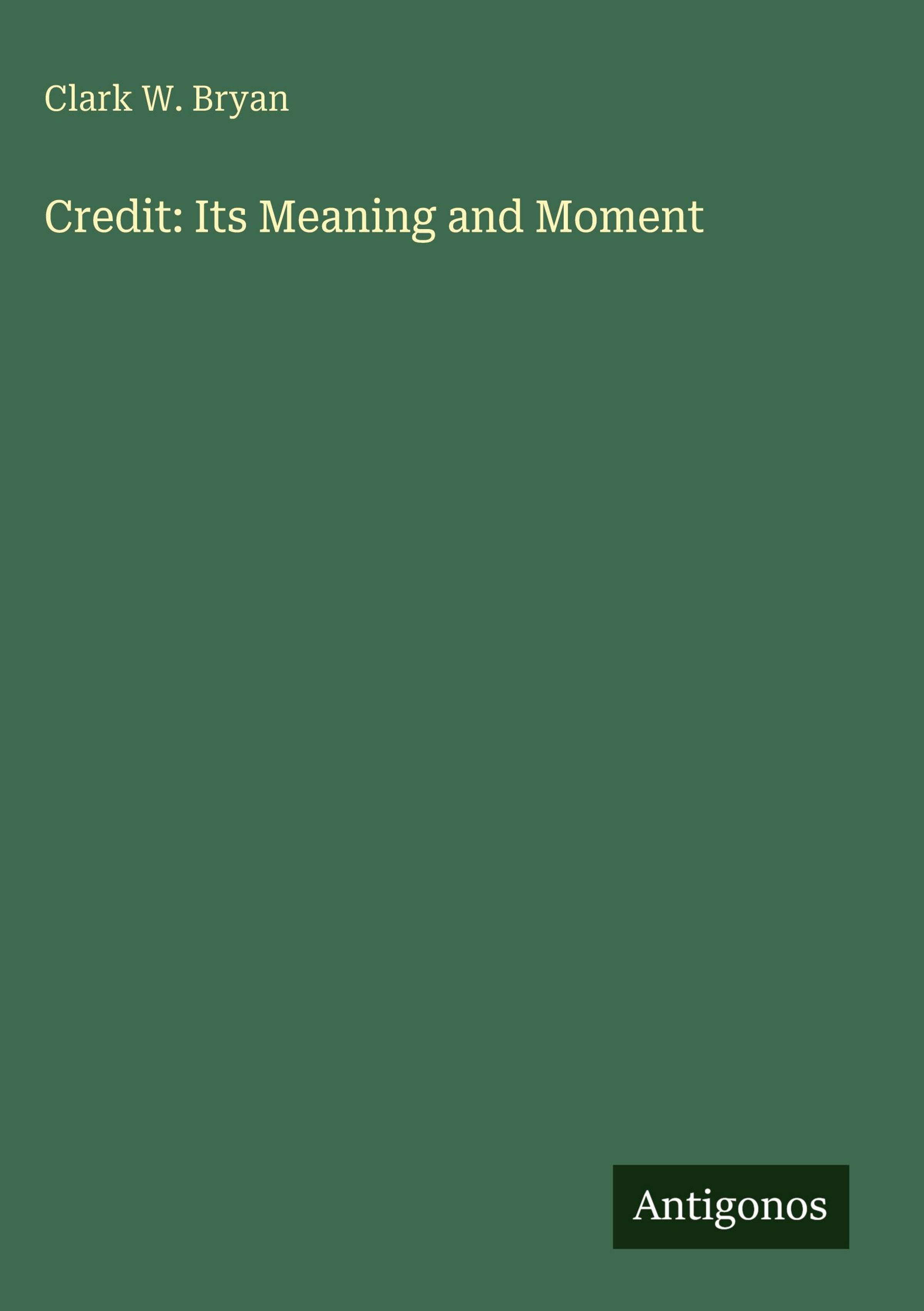 "Clark W. Bryan. Credit: Its Meaning and Moment. Antigonos" auf grünem Hintergrund., Buch