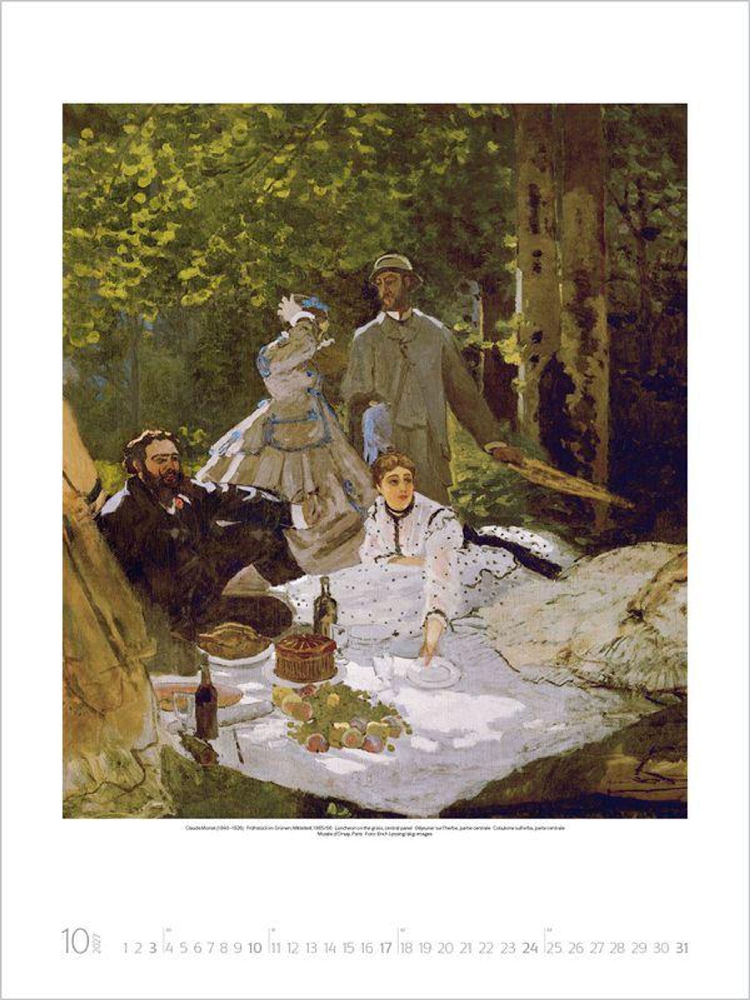 Monet steht wie kein anderer Künstler für die Stilrichtung des Impressionismus. Mit seinen grandiosen Farb- und Lichtkompositionen, die er v. a. in der freien Natur schuf, bezaubert er seine Betrachter bis heute. Eine repräsentative Auswahl seines bahnbrechenden Schaffens zeigt dieser Kalender.