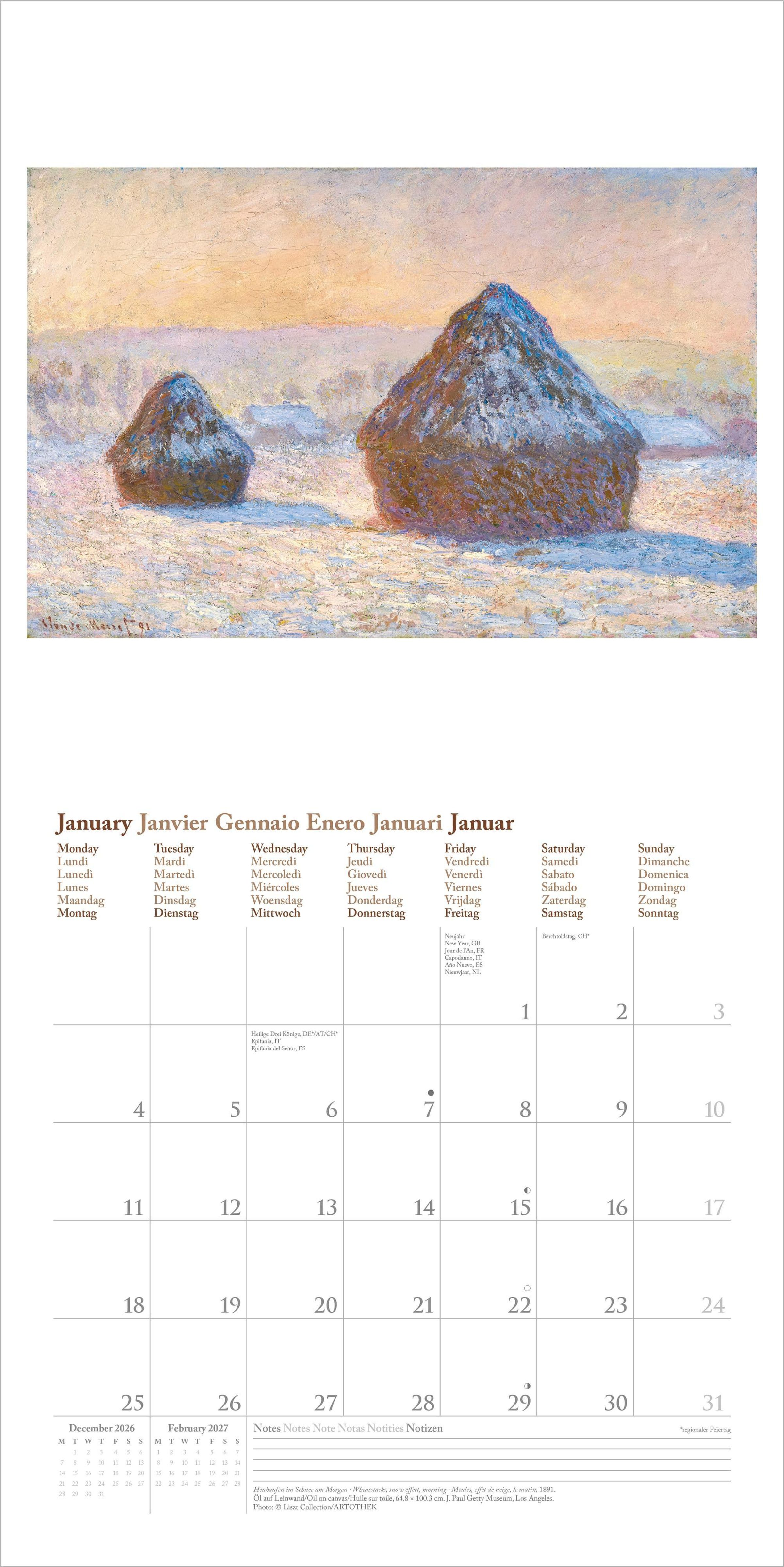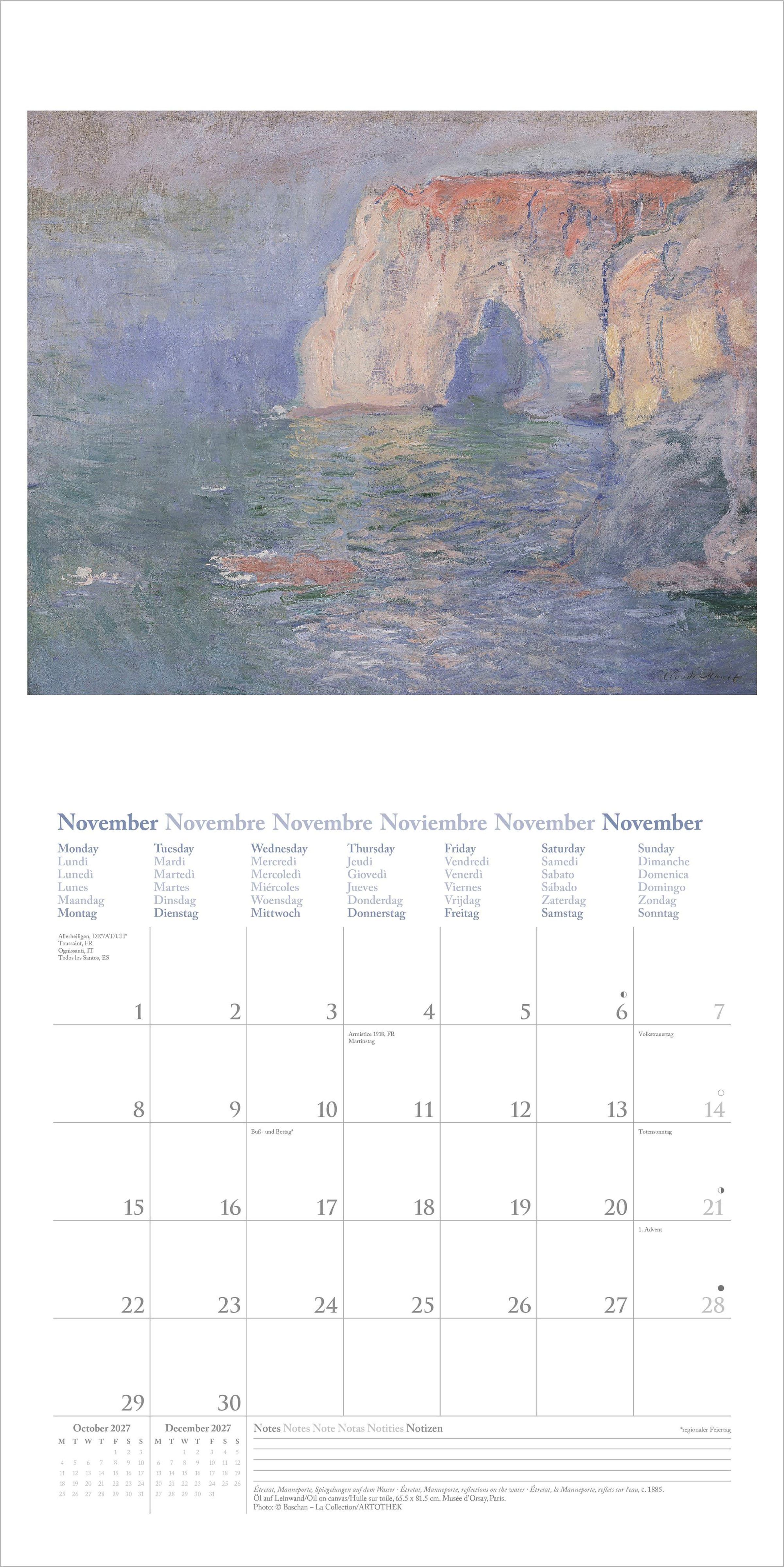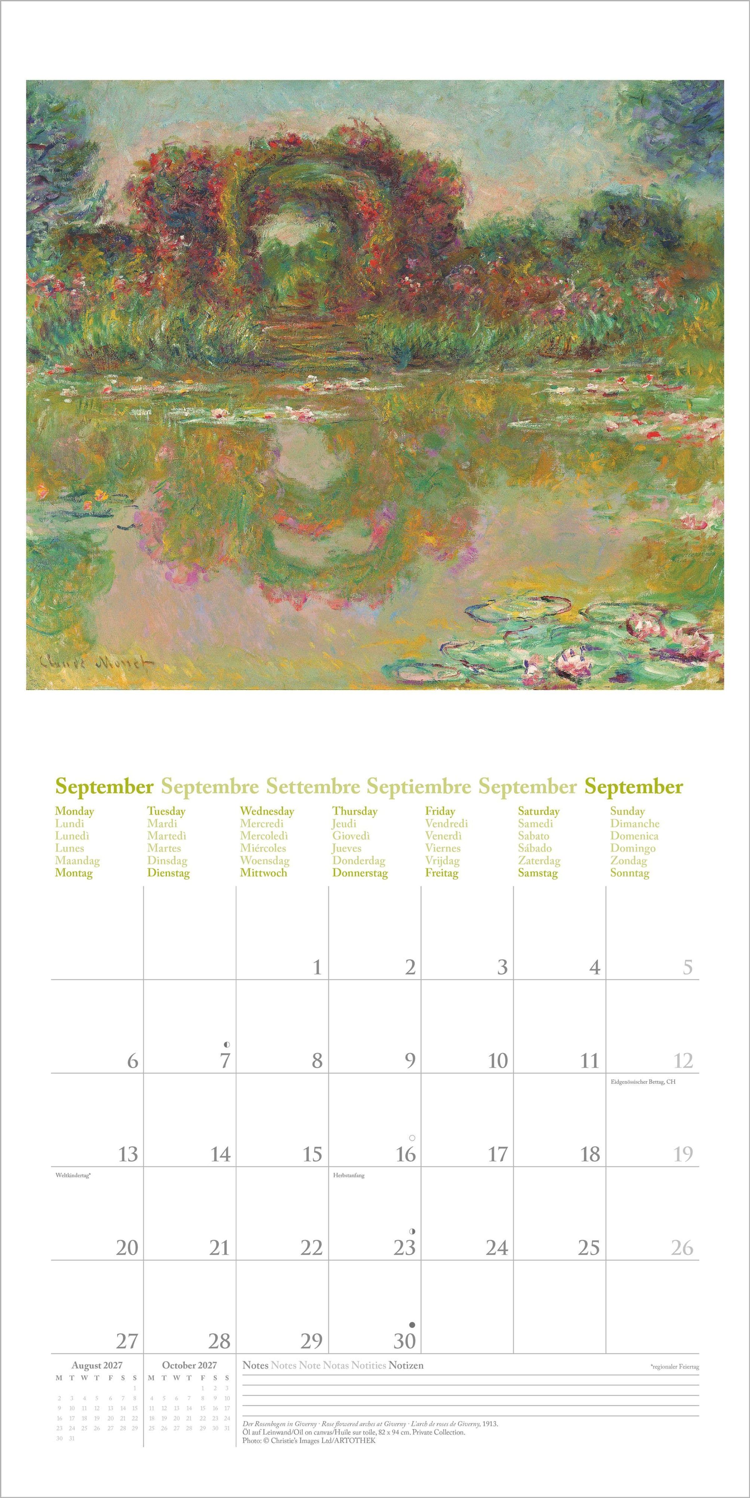 Dieser hochwertige Kunstkalender bringt die lichtdurchfluteten Werke Monets an Ihre Wand und macht das Jahr 2027 zu einem inspirierten Begleiter.