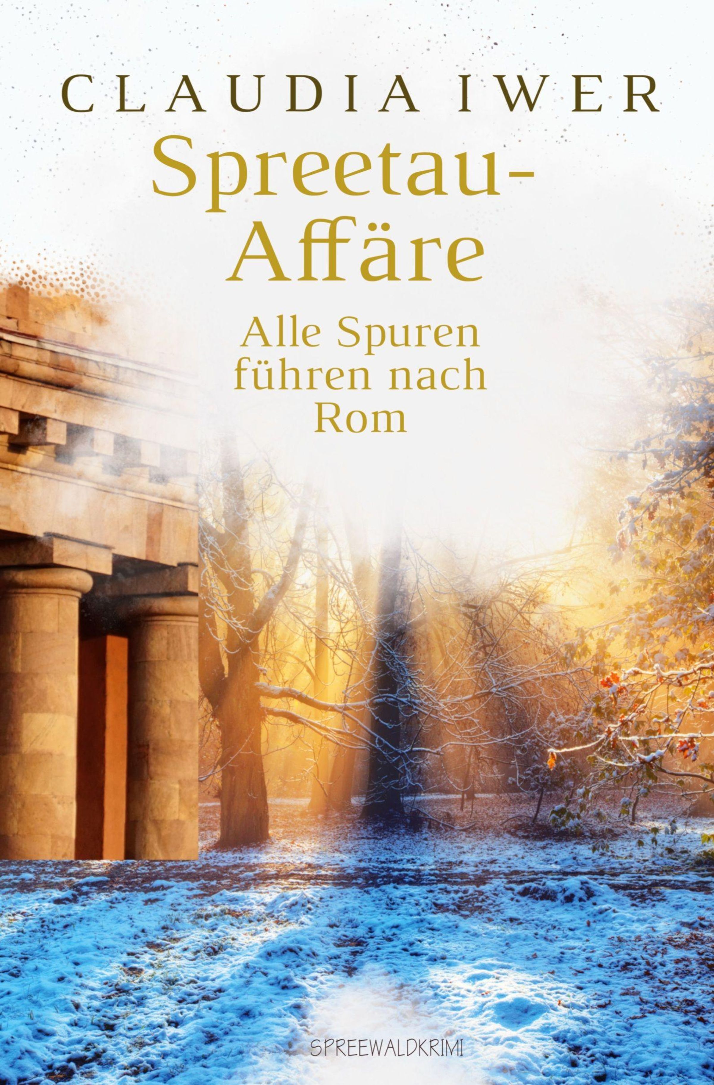 „CLAUDIA IWER, Spreetau-Affäre, Alle Spuren führen nach Rom“ vor einem Waldboden mit Säulen und Lichteinfällen., Buch