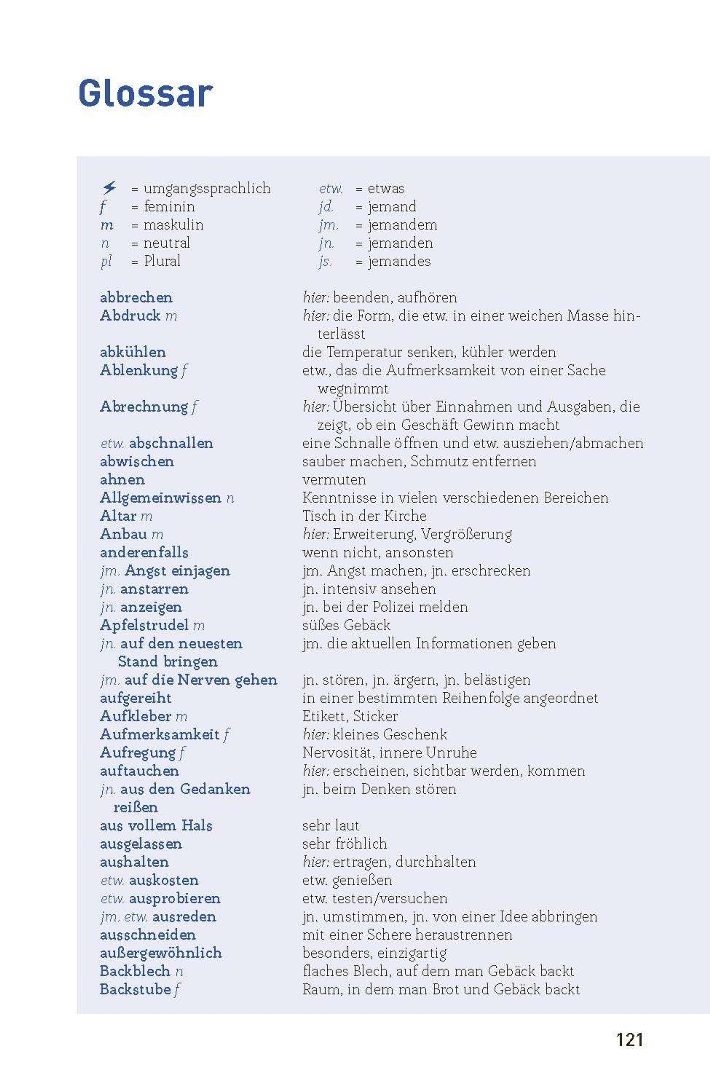 - Umfangreiches Glossar: Das alphabetische Glossar am Ende des Buches ermöglicht es, die Wörter aus allen Texten auch nachträglich nachzuschlagen.