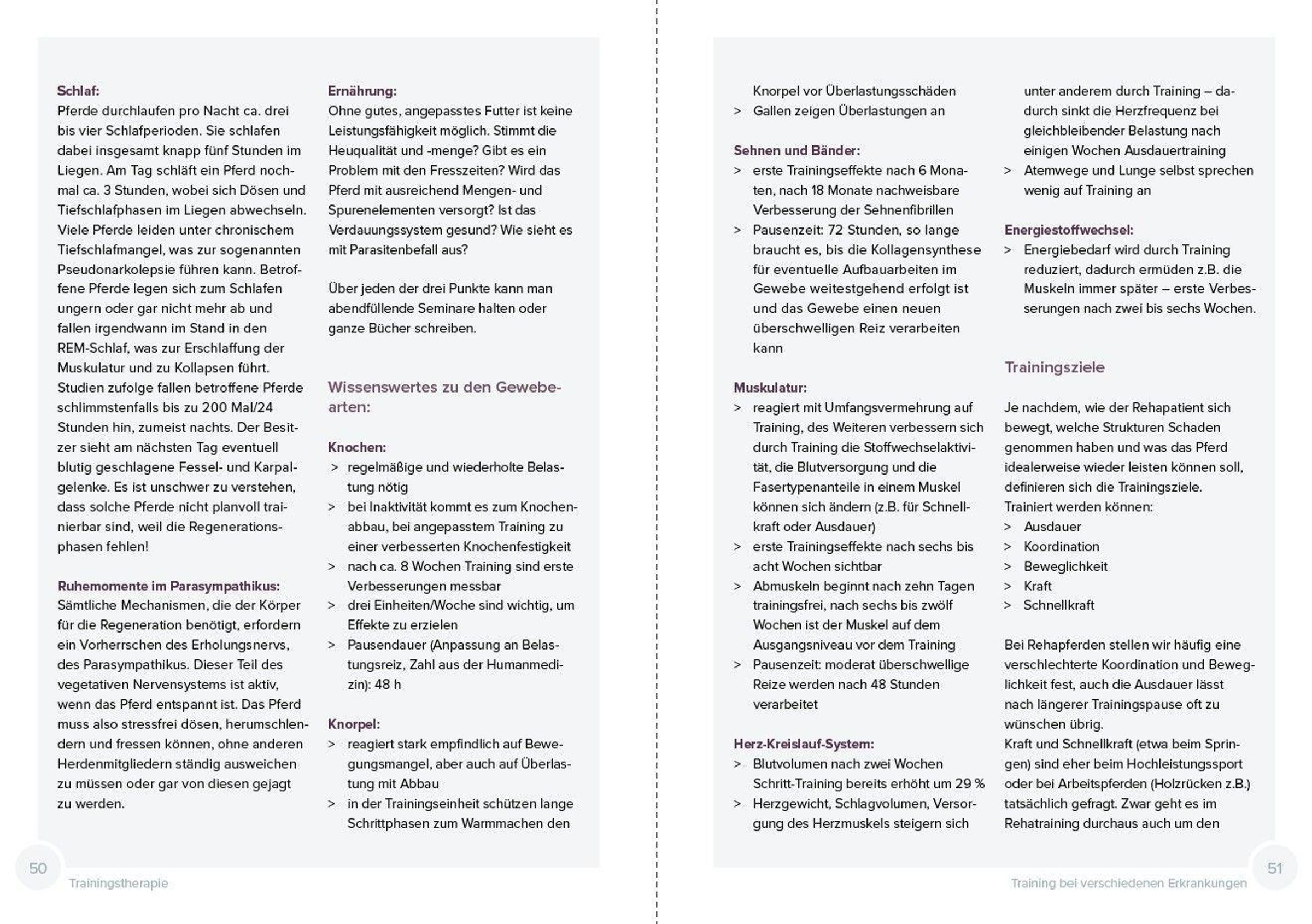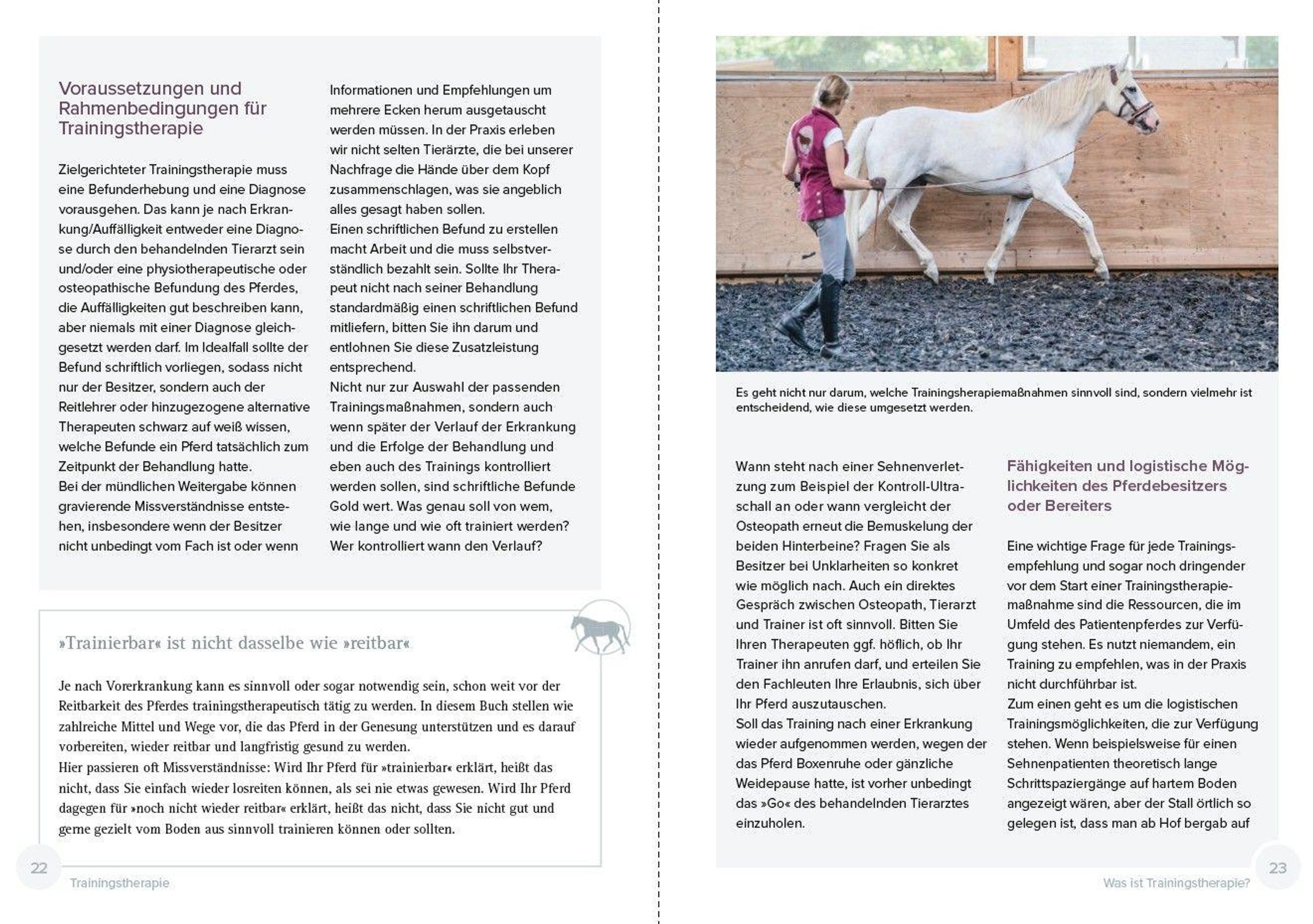 'Den können Sie jetzt wieder antrainieren.' Diesen Satz hört man häufig vom Tierarzt, nachdem eine Verletzung ausgeheilt ist. Arbeitet der Reiter das Pferd dann ohne sinnvollen Plan, steht er bald wieder vor Problemen. Um Schmerzgedächtnis und Kompensationsmuster zu überlisten, bedarf es der Trainingstherapie: Dabei wird das Pferd gezielt je nach seinen Befunden trainiert, denn geschädigte Strukturen heilen in unterschiedlichem Tempo und sprechen auf unterschiedliches Training an. Dieses Buch zeigt klare Wege und den sinnvollen Einsatz von Hilfsmitteln wie Tapes, Cavaletti und Co.,um dem Pferd wieder Freude an der gesunden Bewegung zu vermitteln.