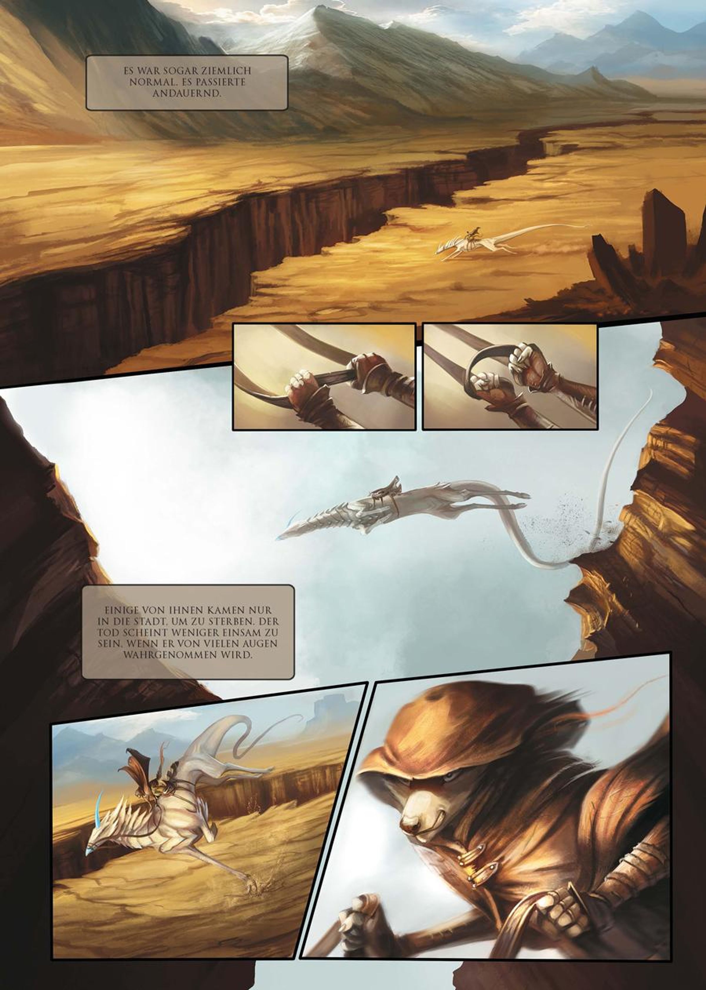 Die harsche Welt von Yria ist voller Geheimnisse. Es gibt Anzeichen, dass Yria nicht immer die zerklüftete Wüste war, die sie heute ist, aber kaum einer ihrer tierähnlichen Bewohner kann sich an diese Vorzeit erinnern. Die Wanderin Myre interessiert sich nicht für Sagen und Geschichten. Begleitet von ihrem Drachen Varug lebt sie von einem Tag zum nächsten, immer auf der Suche nach der nächsten Mahlzeit und dem nächsten Schlafplatz. Aber seinem Schicksal kann man nun mal nicht entkommen, und so befindet sich Myre ehe sie sich versieht auf einer Reise, in deren Verlauf sie in die tiefsten Mysterien Yrias eintauchen wird.