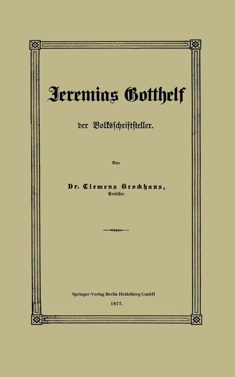 Clemens Brockhaus: Jeremias Gotthelf der Volksschriftsteller, Kartoniert / Broschiert