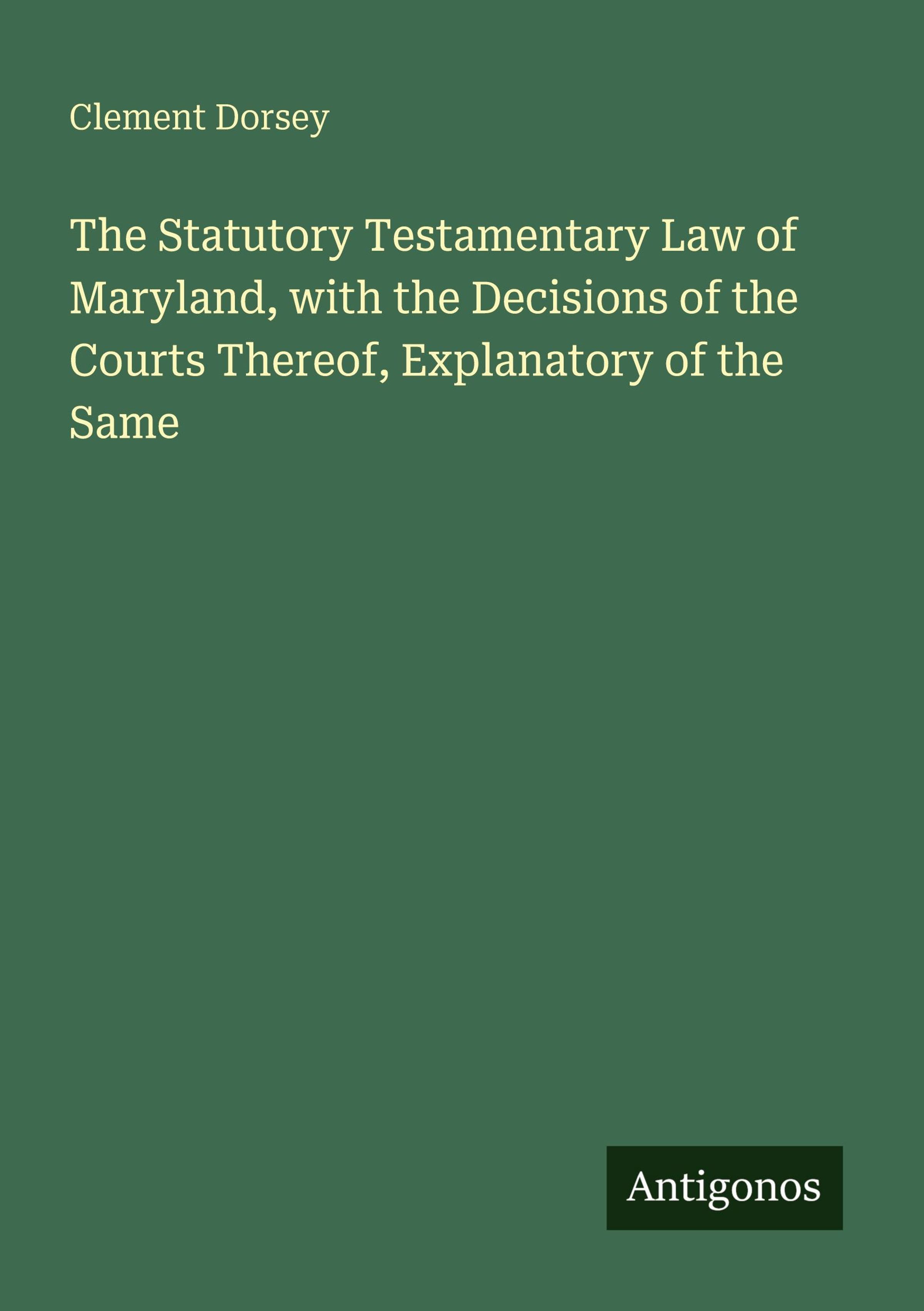 Clement Dorsey: The Statutory Testamentary Law of Maryland, with the Decisions of the Courts Thereof,..., Kartoniert / Broschiert