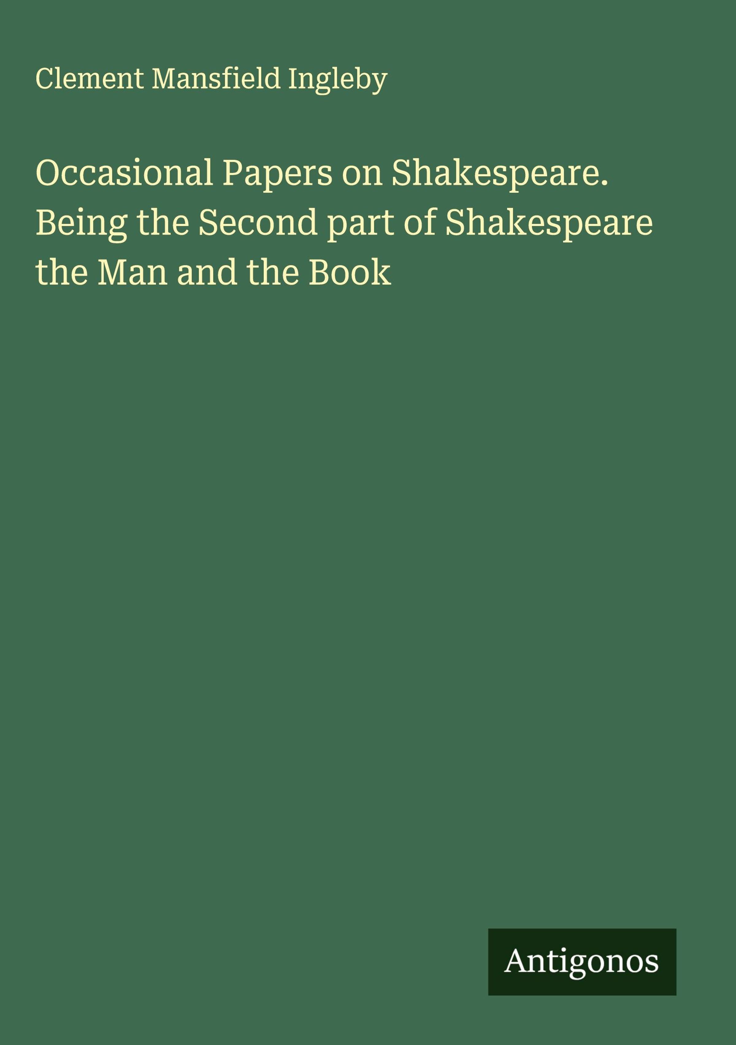 Clement Mansfield Ingleby: Occasional Papers on Shakespeare. Being the Second part of Shakespeare the Man and..., Gebunden