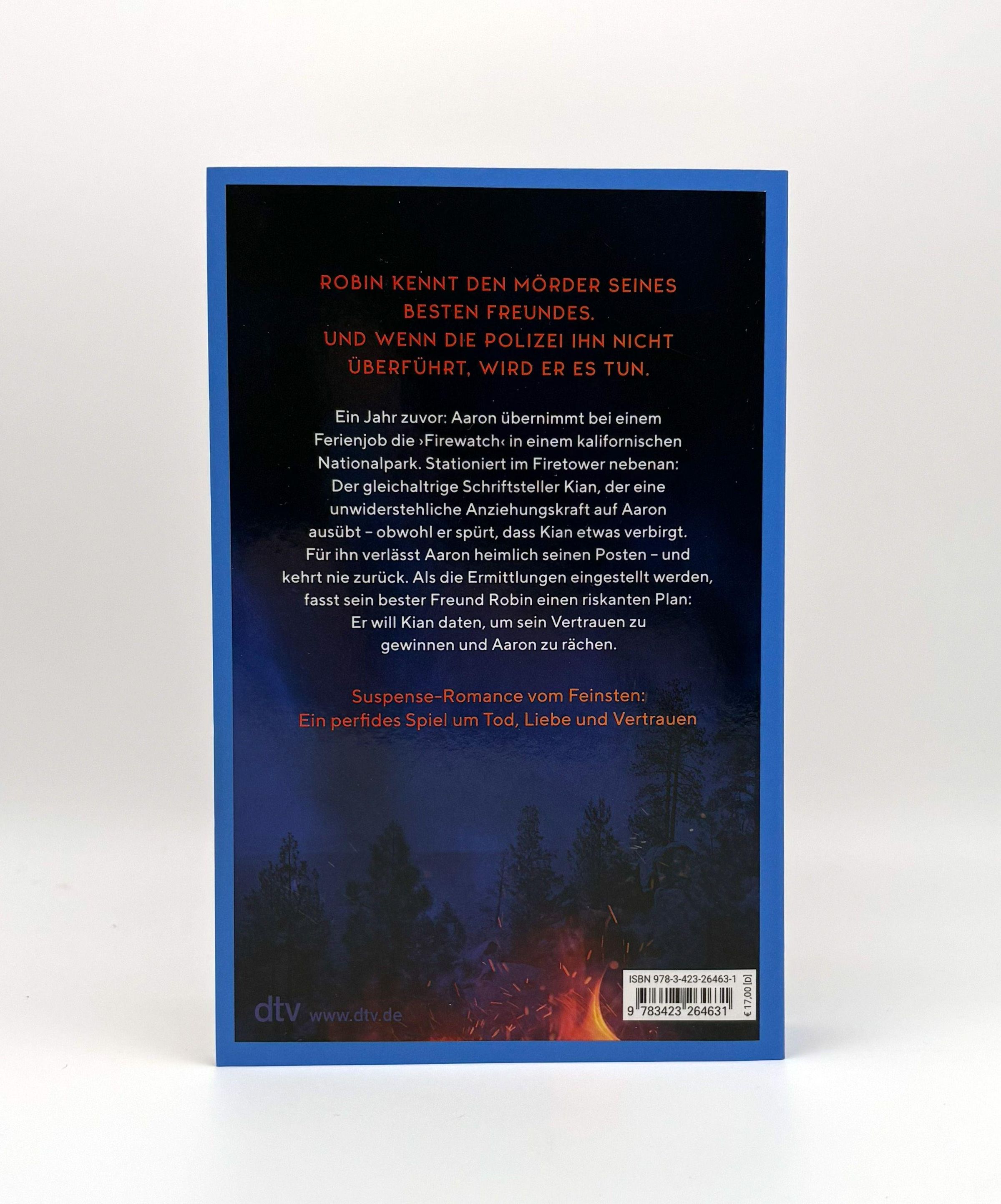 Ein Jahr zuvor: Aaron übernimmt bei einem Ferienjob die Firewatch in einem kalifornischen Nationalpark. Stationiert im Firetower nebenan: Der gleichaltrige Schriftsteller Kian, der eine unwiderstehliche Anziehungskraft auf Aaron ausübt - obwohl er spürt, dass Kian etwas verbirgt. Für ihn verlässt Aaron heimlich seinen Posten - und kehrt nie zurück. Als die Ermittlungen eingestellt werden, fasst sein bester Freund Robin einen riskanten Plan: Er will Kian daten, um sein Vertrauen zu gewinnen und Aaron zu rächen.
