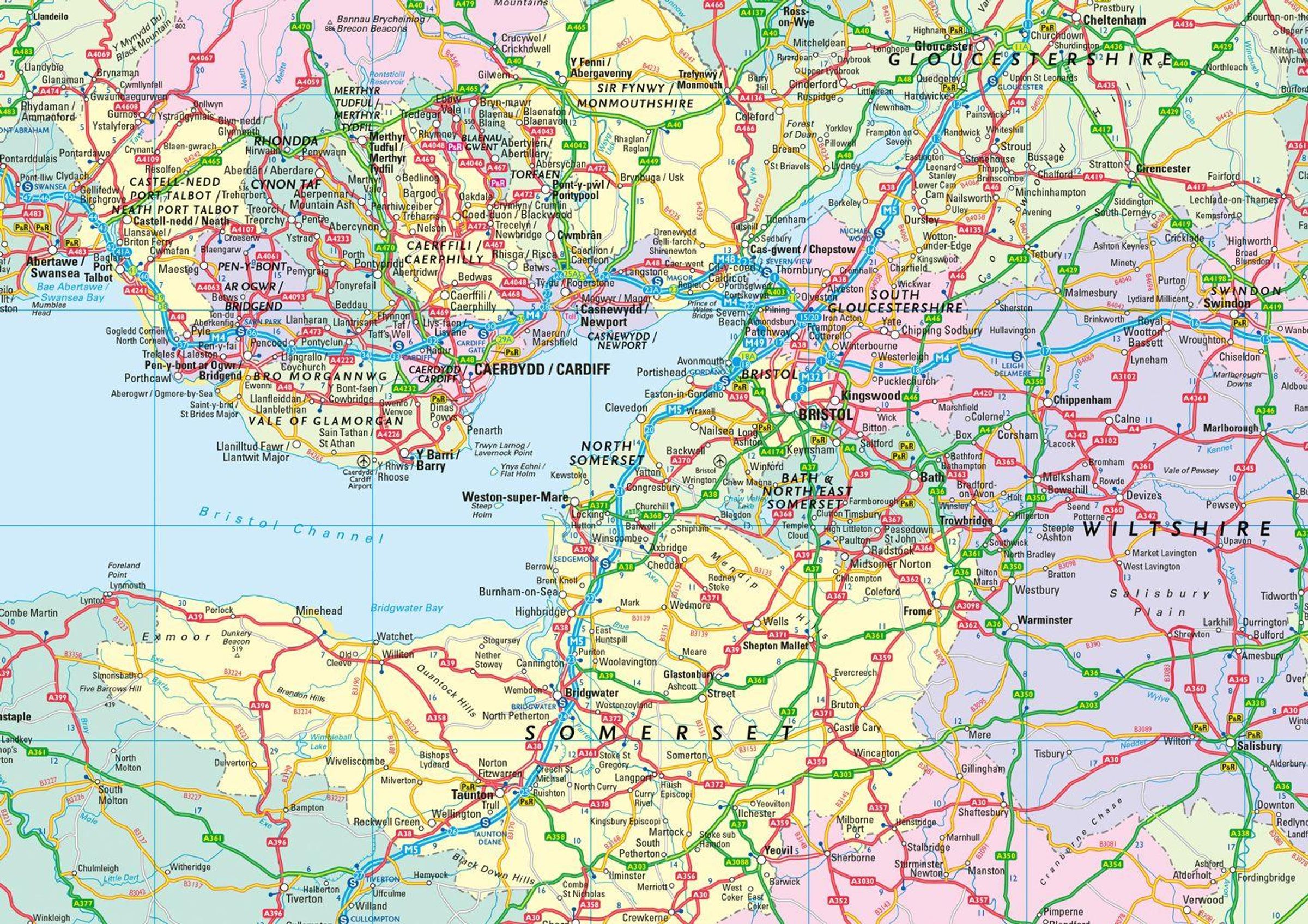 With its easily identifiable counties and unitary authorities, this map is ideal for business users but it is also perfect for tourists for route planning.