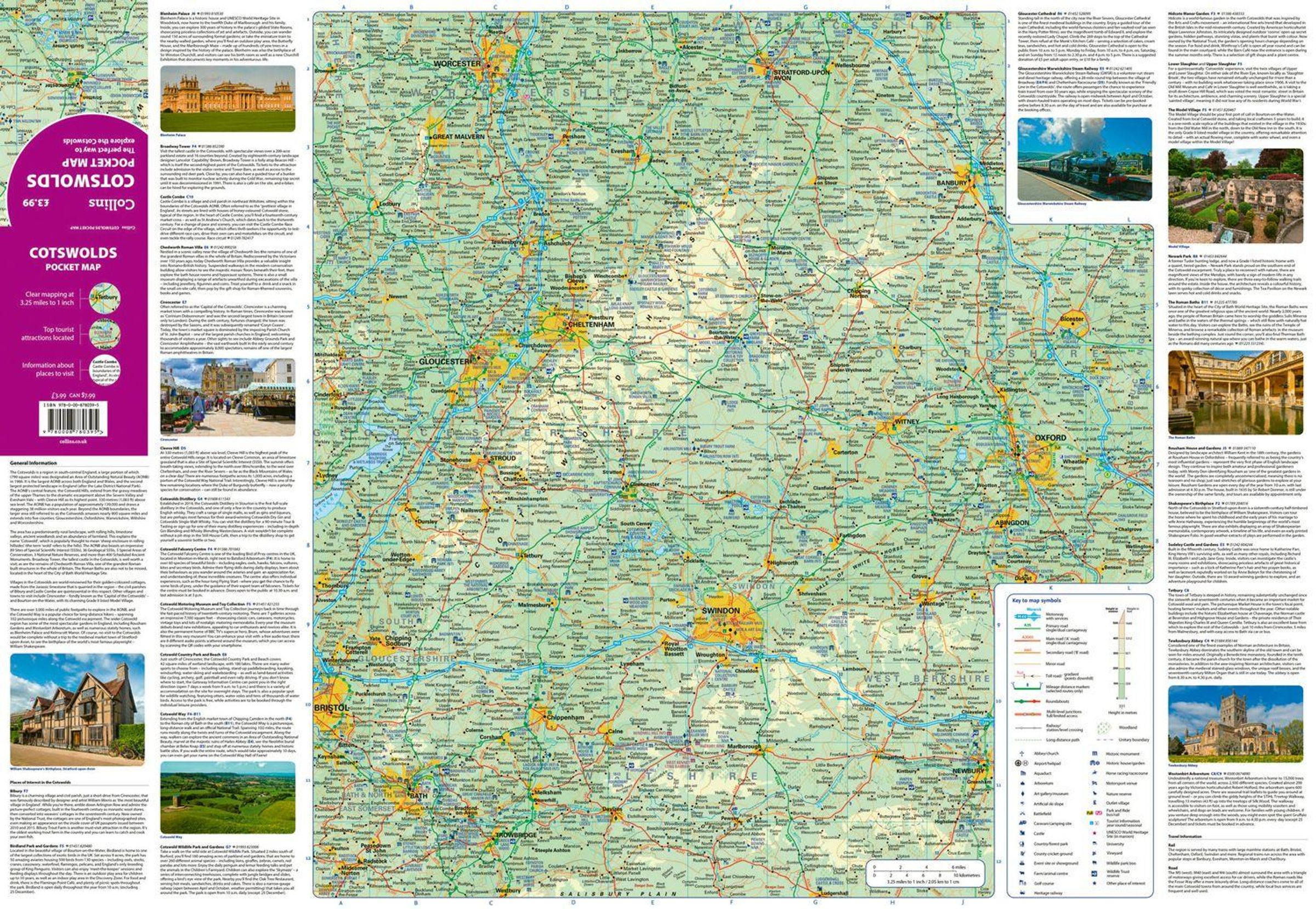 Handy little full colour map of the Cotswolds. Detailed mapping and tourist information ideal for any road trip.