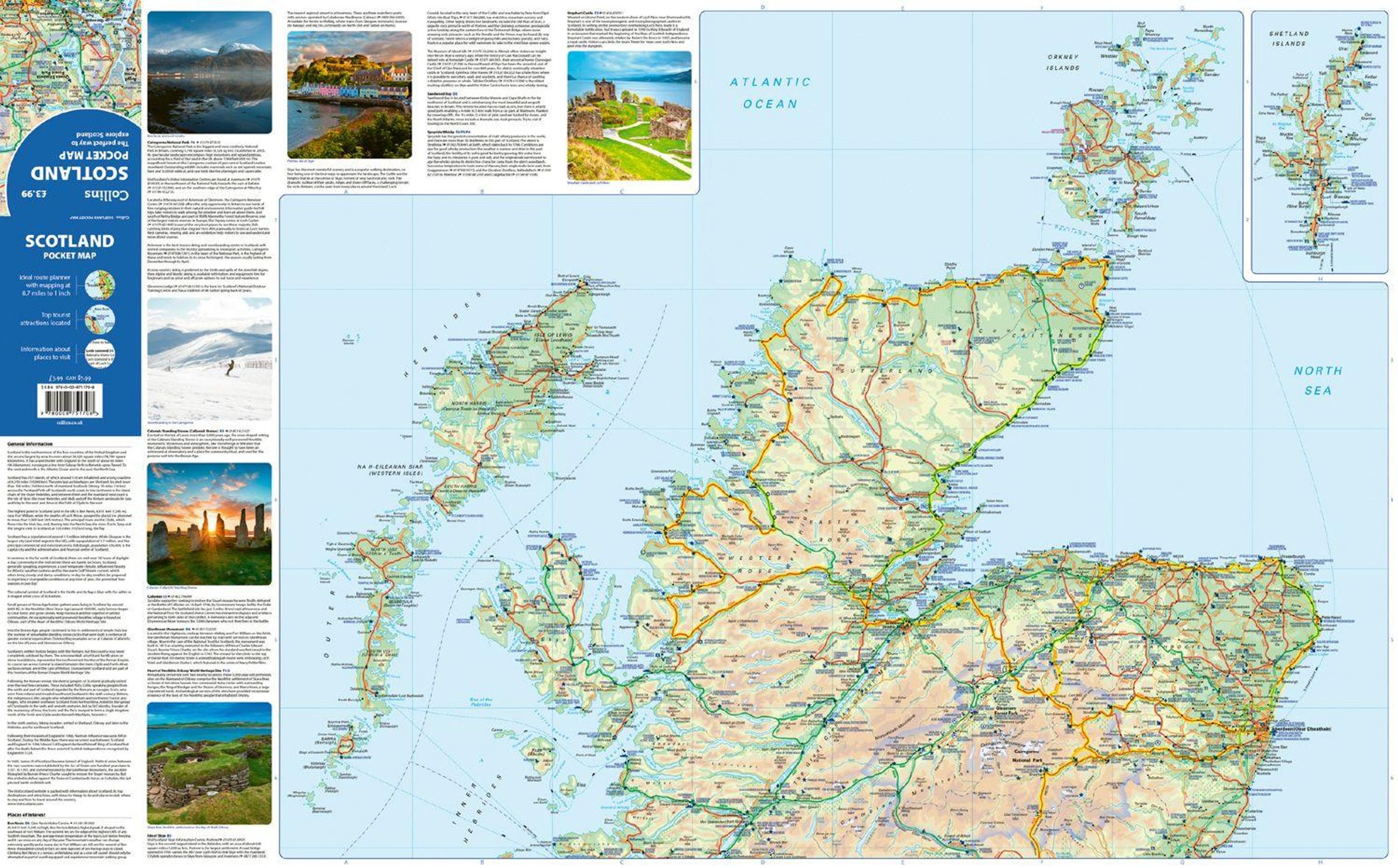Fully updated and very detailed for its size, this is a full-colour, double-sided map of Scotland. Showing the Central Belt, southern Scotland and northern England on one side, and northern Scotland including Orkney and Shetland on the reverse.