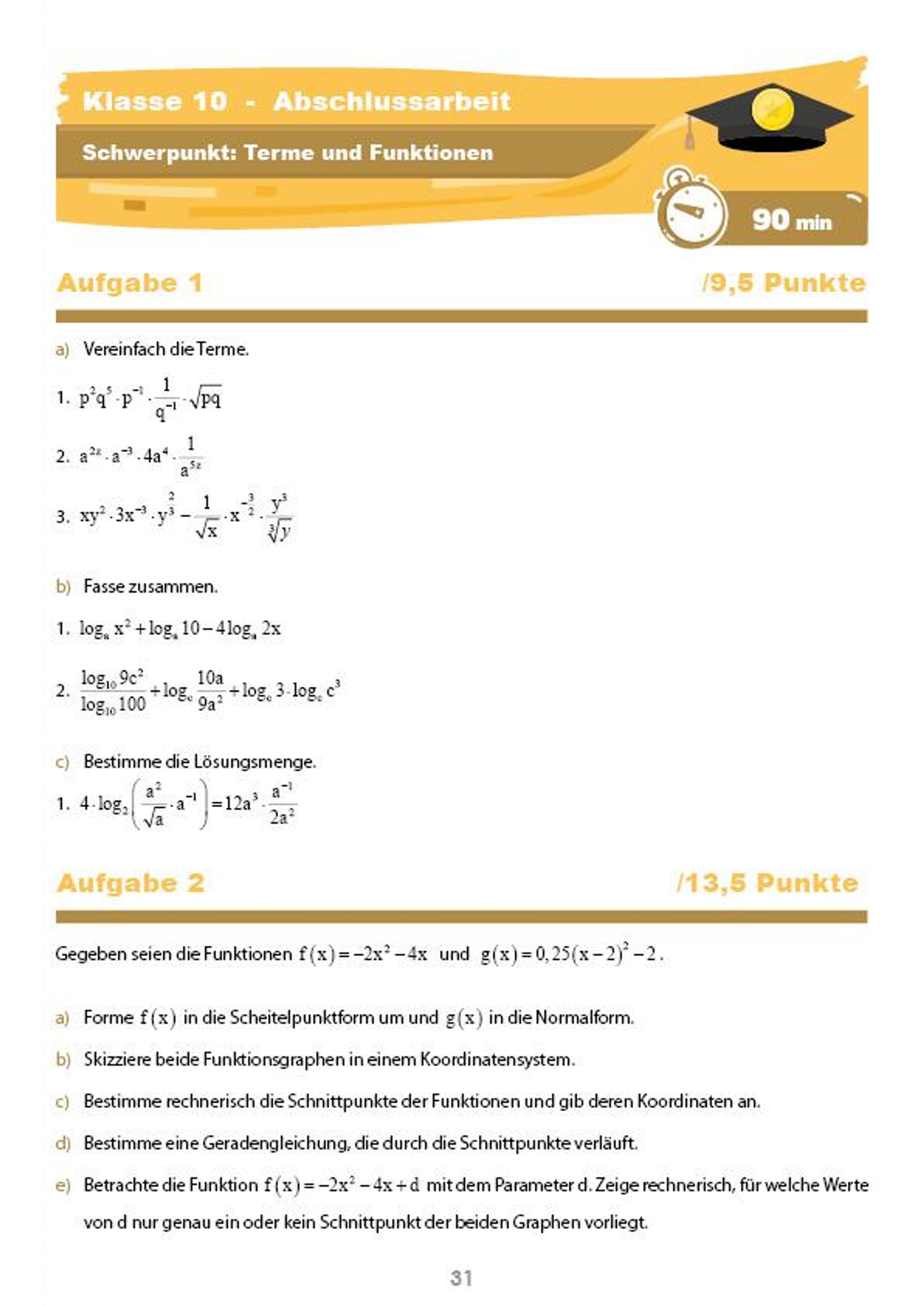 Enthaltene Themen u. a.: ¿ Wahrscheinlichkeiten ¿ Potenzfunktionen ¿ Exponentialfunktionen & Logarithmusfunktionen ¿ Trigonometrie ¿ Verhalten ganzrationaler Funktionen ¿ Abschlussprüfungen: Terme und Funktionen & Funktionsuntersuchung