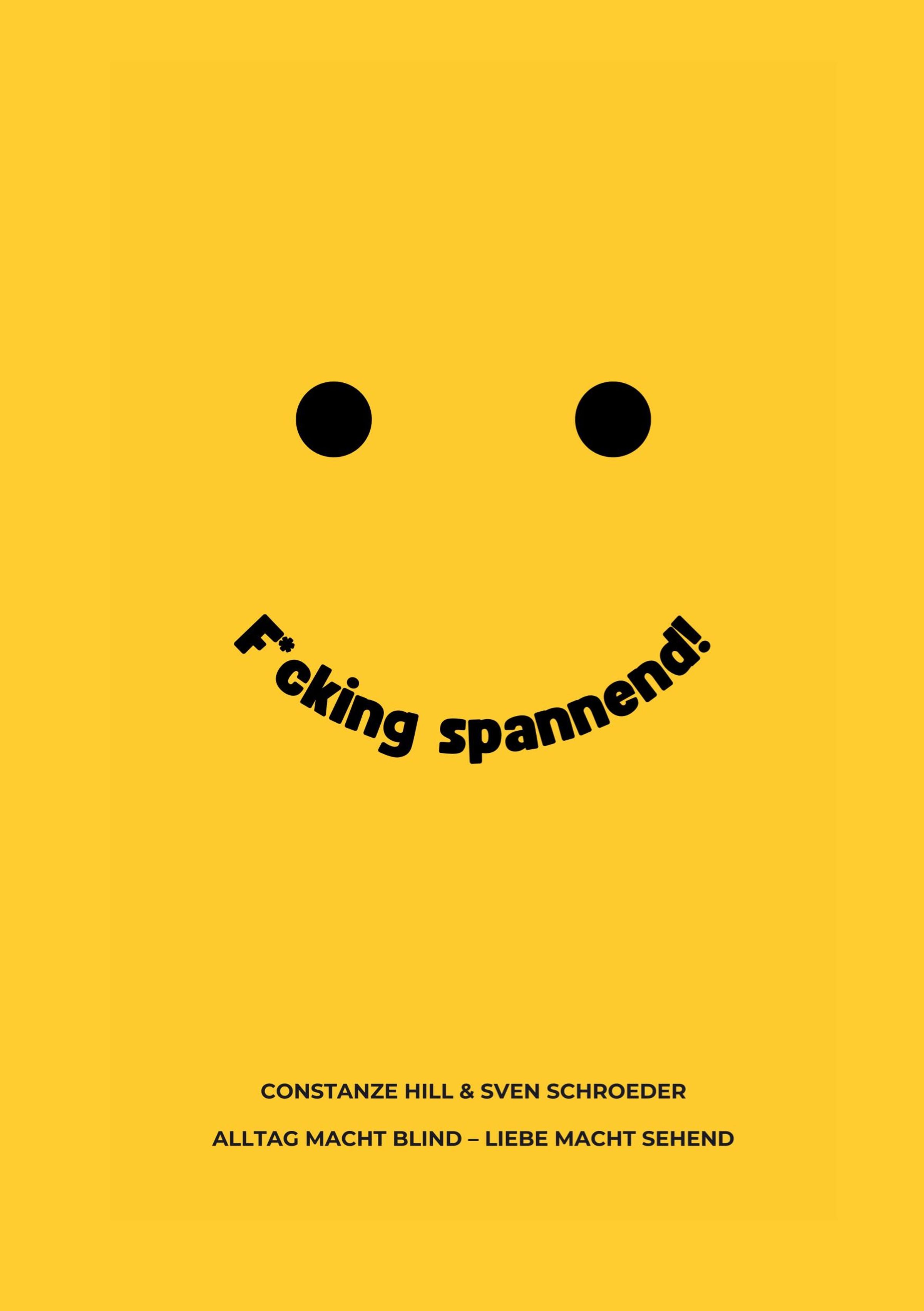 „F*cking spannend!“, darunter „Constanze Hill & Sven Schroeder“. Ein gelbes Smiley mit schwarzem Gesicht., Buch