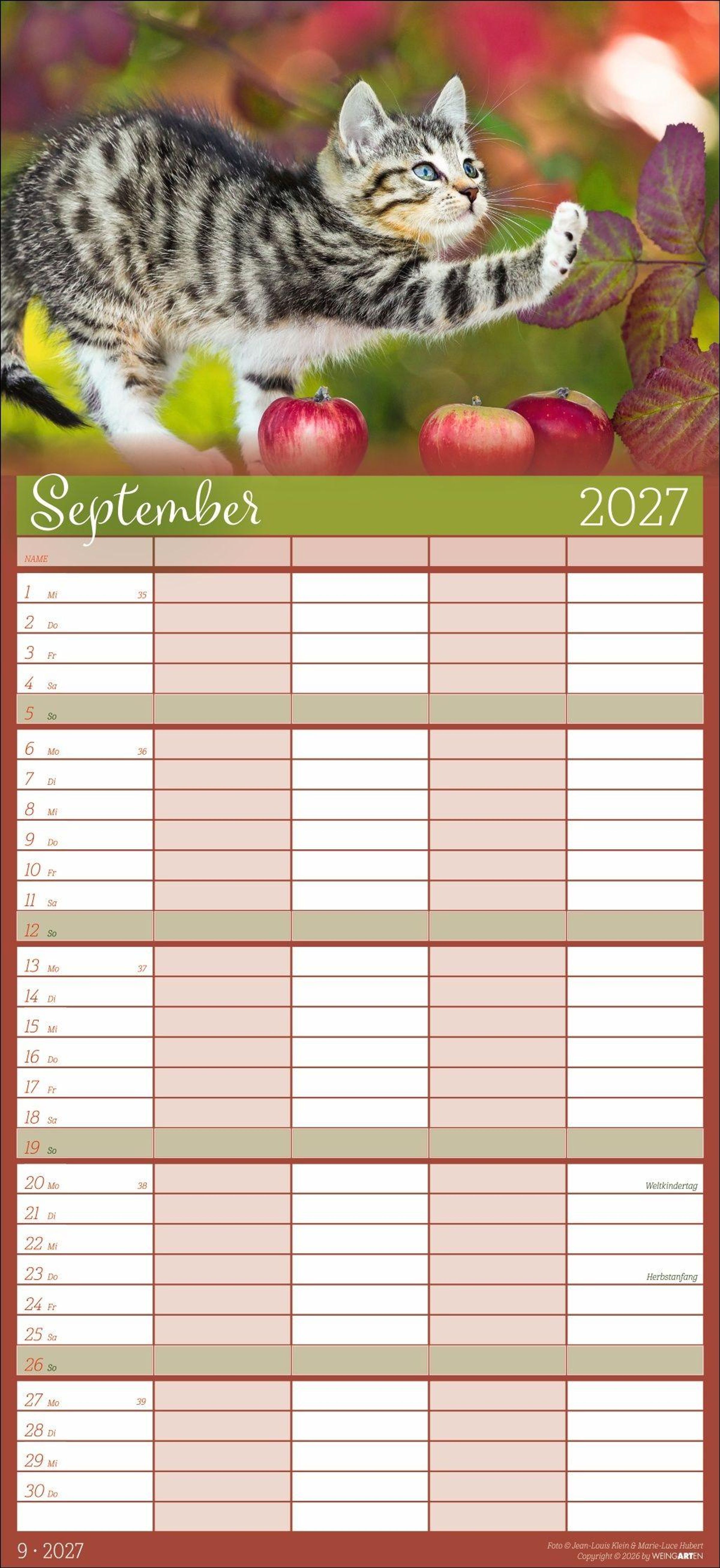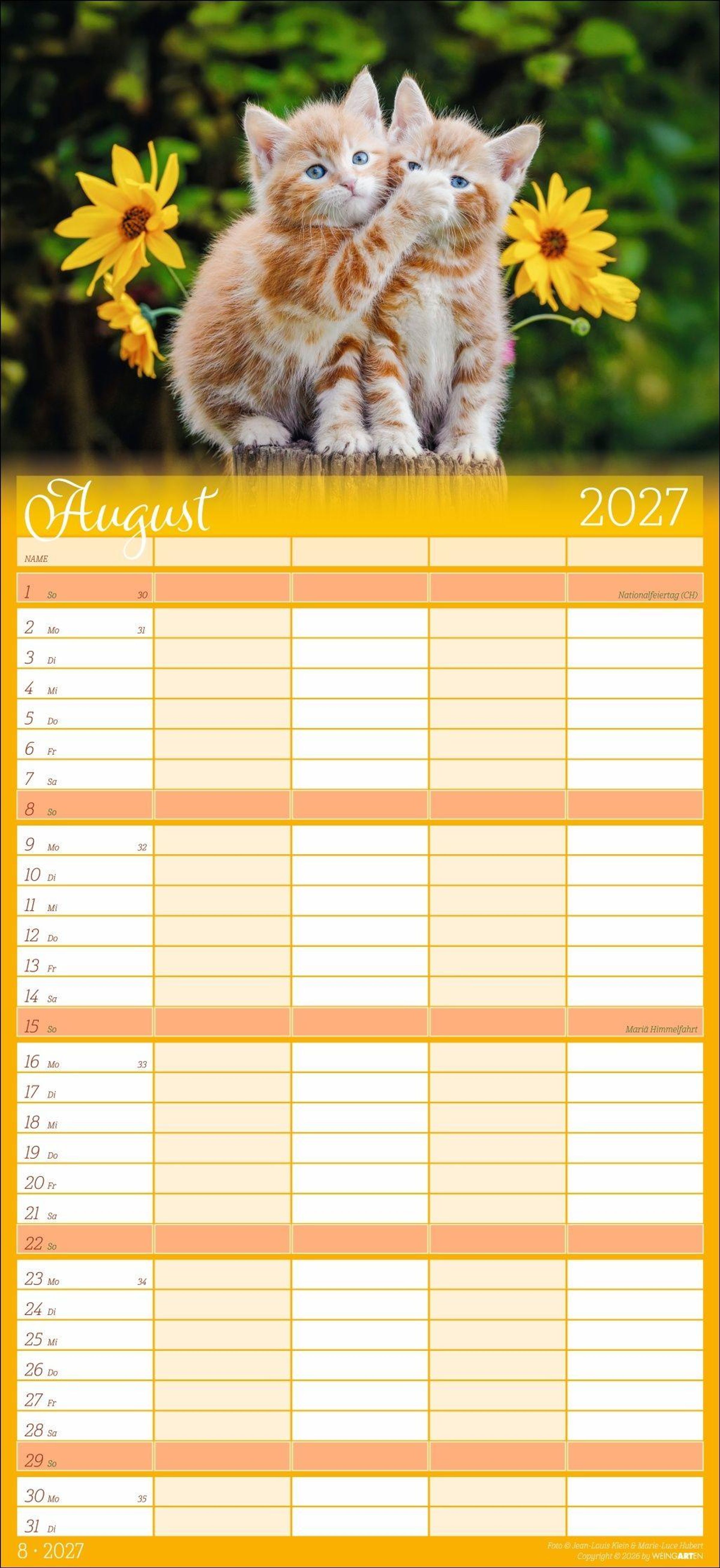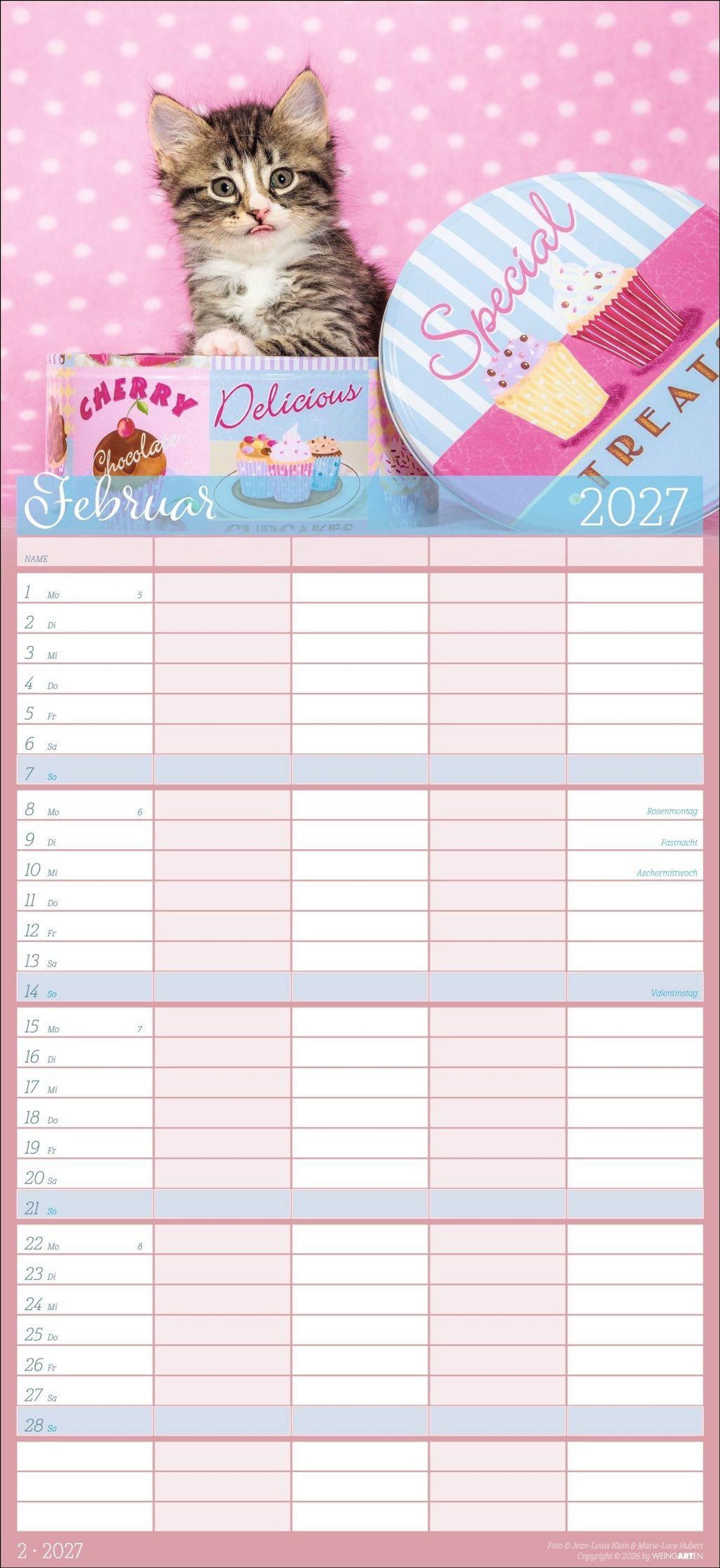 - Großer Foto-Terminkalender mit 5 Spalten für Familien. Schöner Familien-Wandkalender 2027 mit süßen Katzen-Fotos. 22 x 48 cm