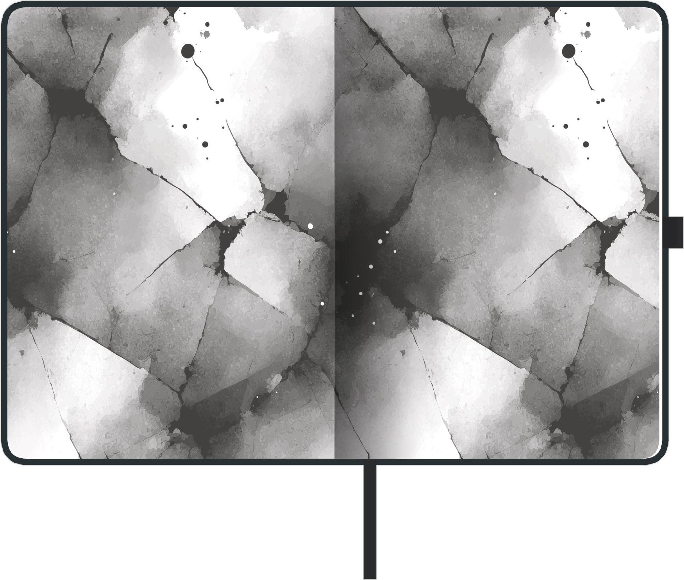 Edle Ausstattung: Schwarzer Einband, farbige Vorsatzpapiere, Elastikbandverschluss, Stifthalter & Lesebändchen