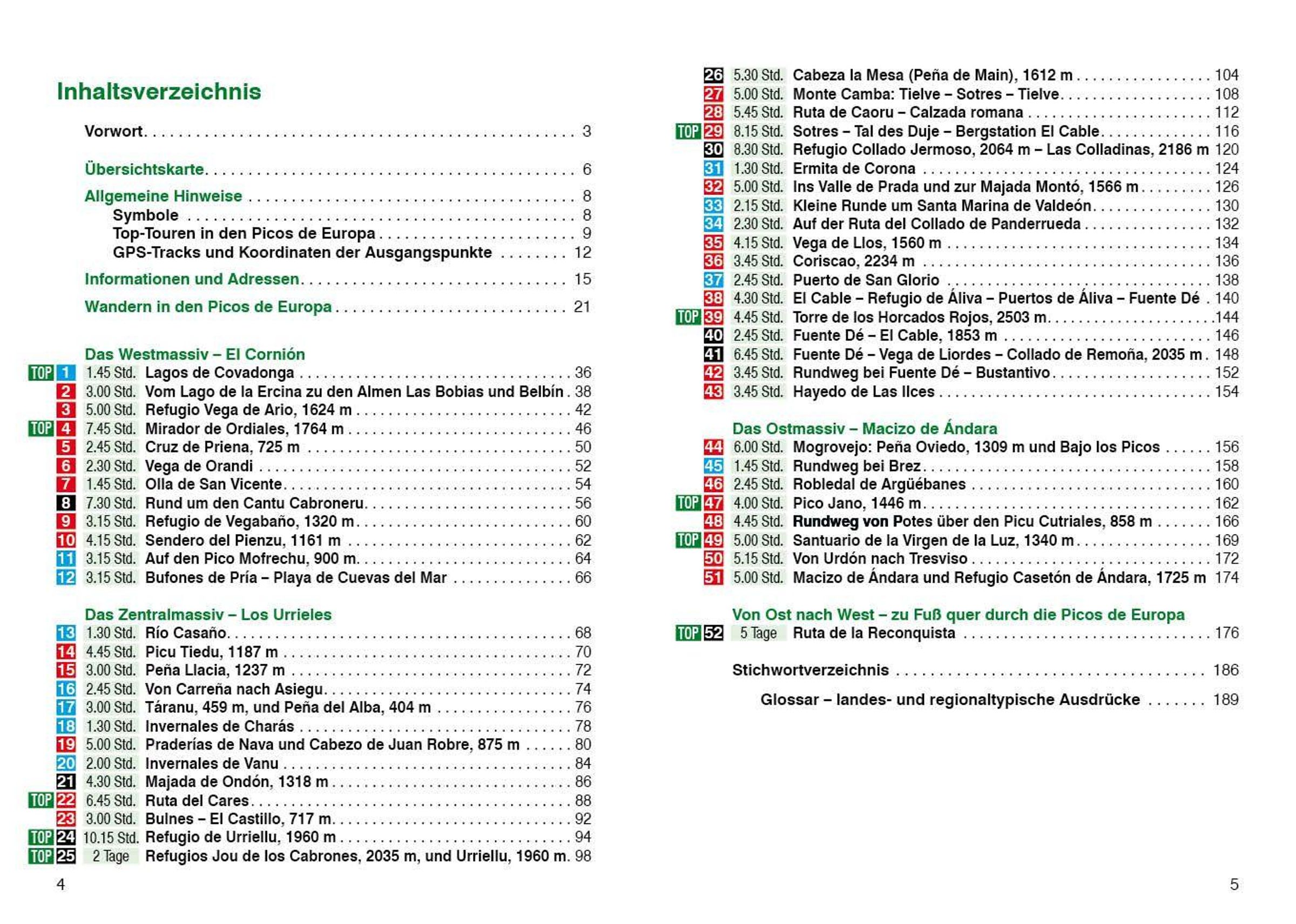 - 52 sorgfältig ausgewählte Wanderungen in den Picos de Europa - von leichten Talwanderungen bis zu anspruchsvollen alpinen Gipfeltouren.