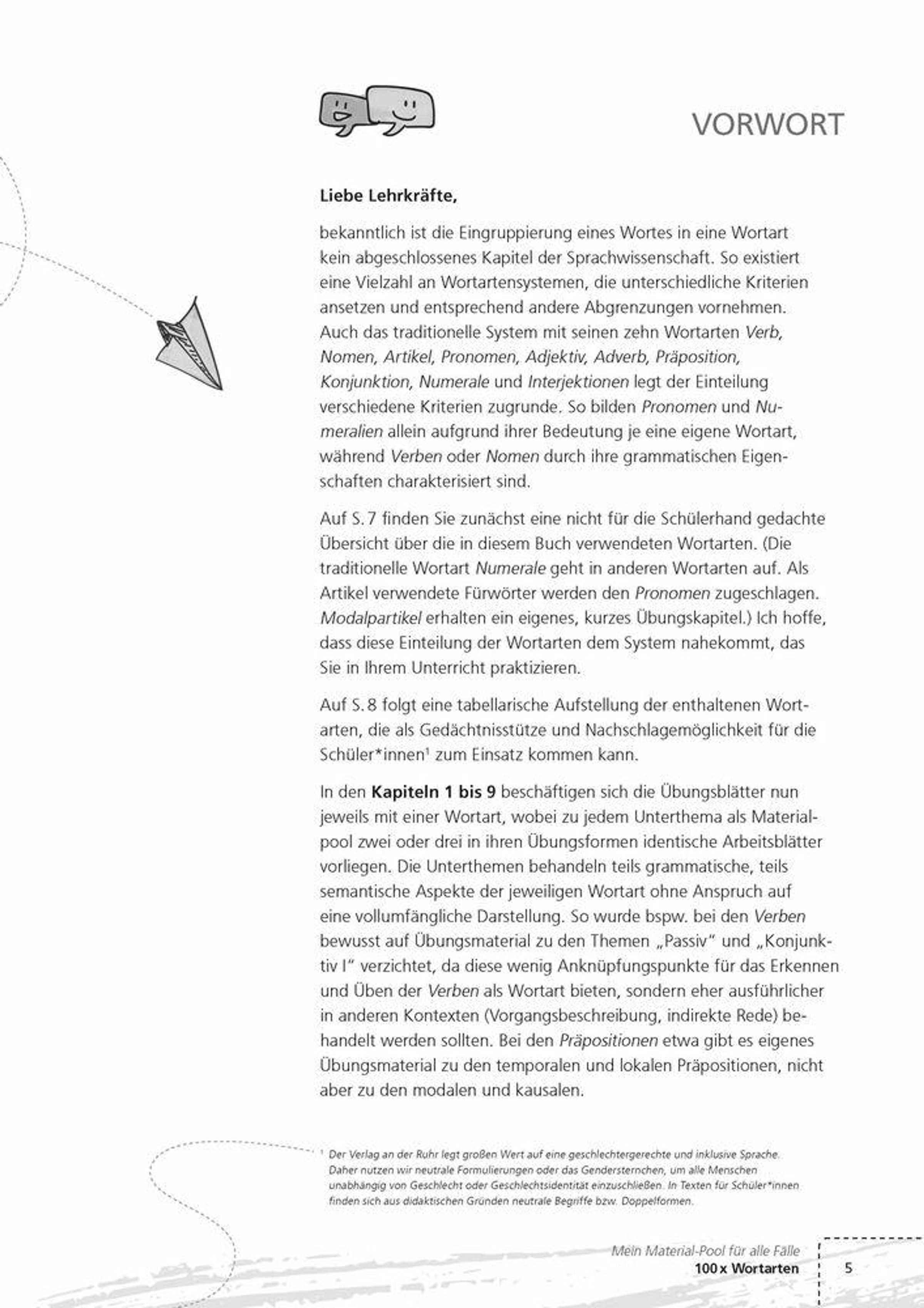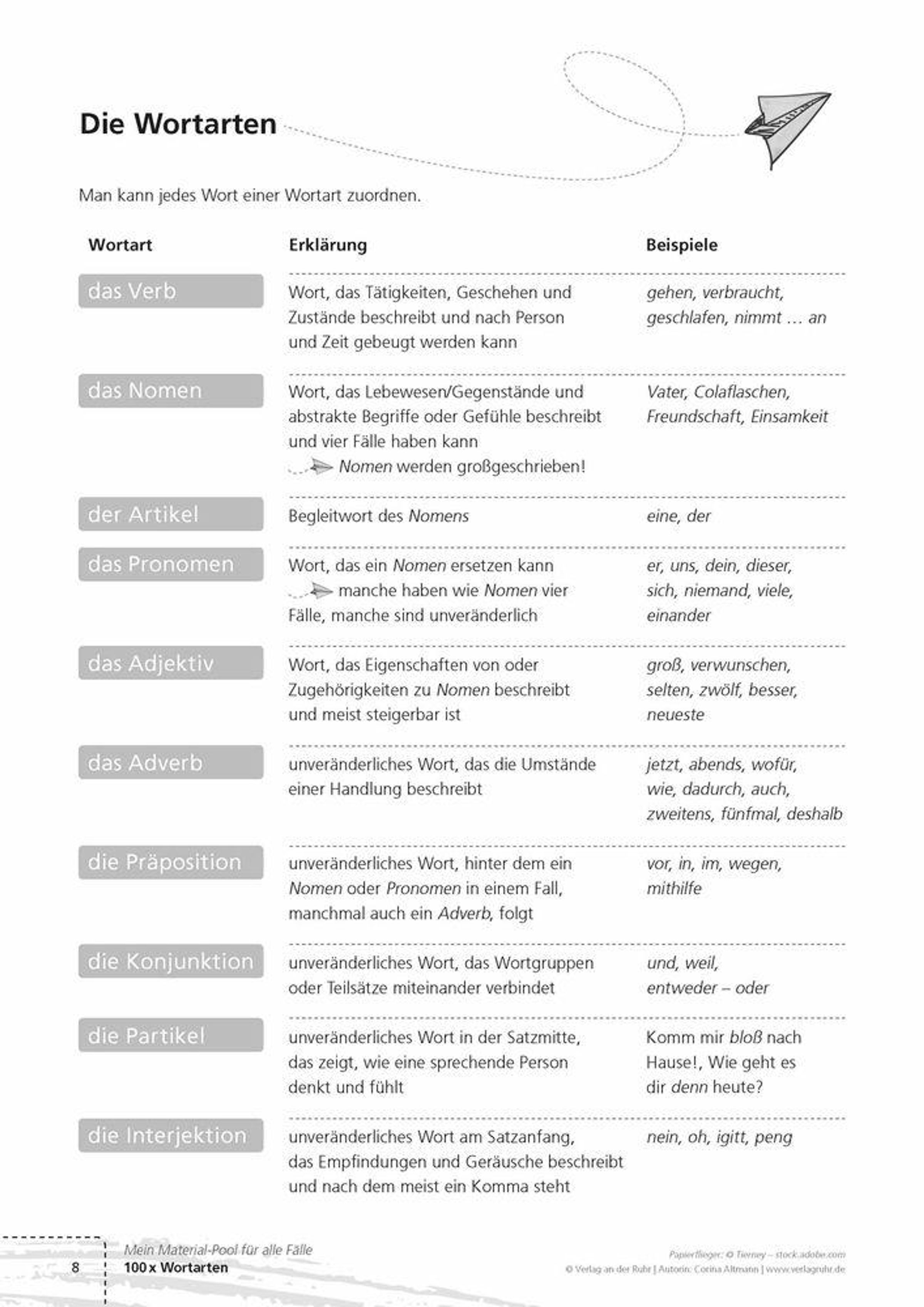 Adjektiv oder Adverb? Konjunktion oder Pronomen? Mit den Arbeitsblättern in dieser Materialsammlung wiederholen und trainieren Ihre Schüler und Schülerinnen Grammatikwissen zum Thema Wortarten . Ob zum Üben zwischendurch oder zum Schließen von Wissenslücken: Bei den 100 Kopiervorlagen ist sicher das Passende dabei! Erweitern Sie die Kenntnisse Ihrer Lerngruppe ganz ohne Vorbereitung - als sinnvoller Lückenfüller am Ende einer Stunde, in Rand- oder Vertretungsstunden oder zur individuellen Förderung. So wird Differenzierung in Ihrem Unterricht leichter, denn Sie haben für jeden Schüler und jede Schülerin passgenaues Übungsmaterial direkt zur Hand. **Die Arbeitsblätter decken zehn Wortarten ab:**Verb, Nomen und Artikel, Pronomen, Adjektiv, Adverb, Präposition, Konjunktion sowie Interjektion und Partikel. Der Lösungsteil im Anhang des Buches ermöglicht zudem eine schnelle Überprüfung und eignet sich auch hervorragend zur Selbstkontrolle.