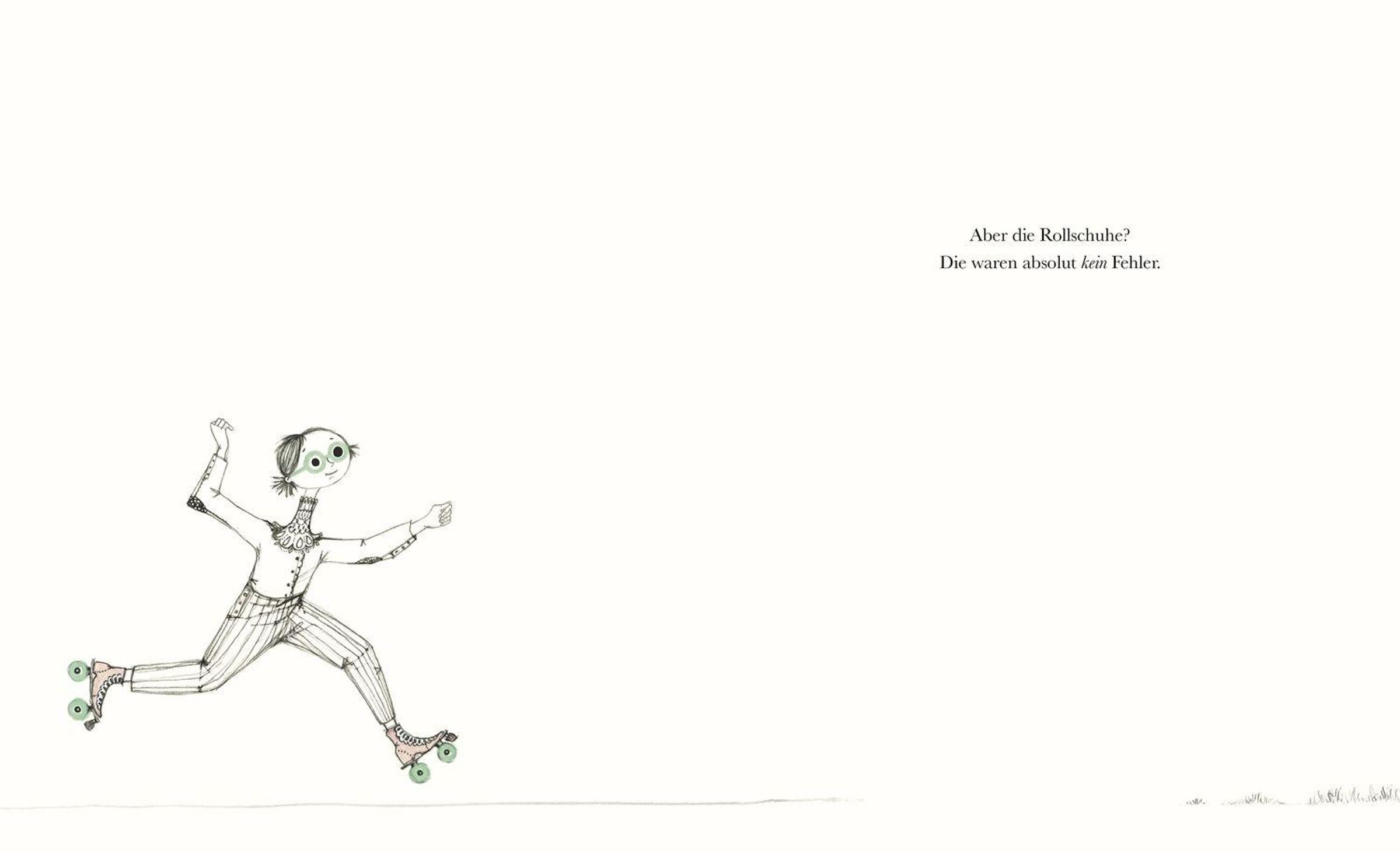 Die Illustratorin nimmt zufällige Flecken und Kleckse auf dem Papier als kreative Herausforderung und lässt sie in ihre Bildwelt einfließen. Dabei verwandelt sie ihr Werk auf skurrile und unerwartete Weise und nimmt die Leser mit auf eine Reise durch ihren Prozess.