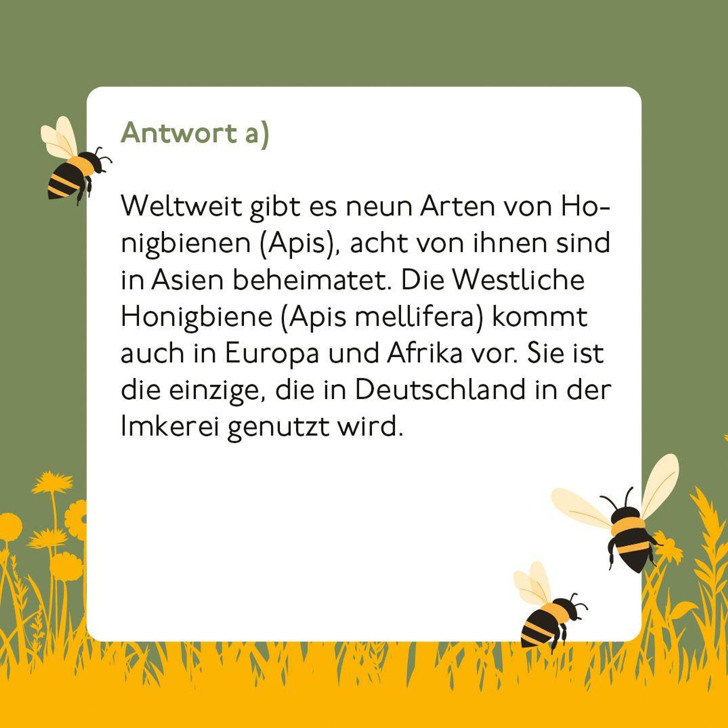 66 liebevoll gestaltete Quizfragen: Ob Bienenarten, Lebensweise, Honigproduktion oder die Rolle der Biene im Ökosystem -- hier können Sie staunen, lernen und Ihr Wissen auf die Probe stellen.