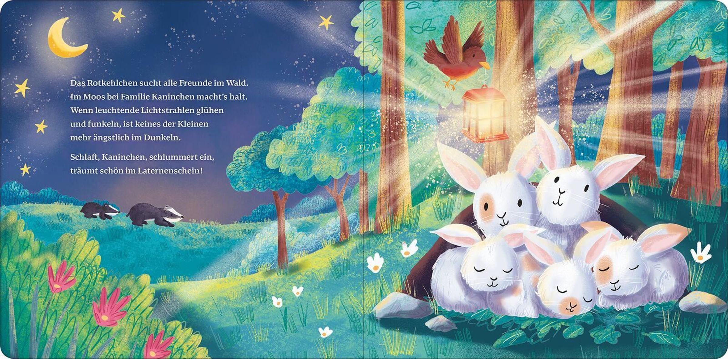 - **Liebevolle Einschlafbegleitung:**Das Einschlafbuch mit integrierter Laterne unterstützt das abendliche Ritual mit sanftem Licht und beruhigender Melodie.