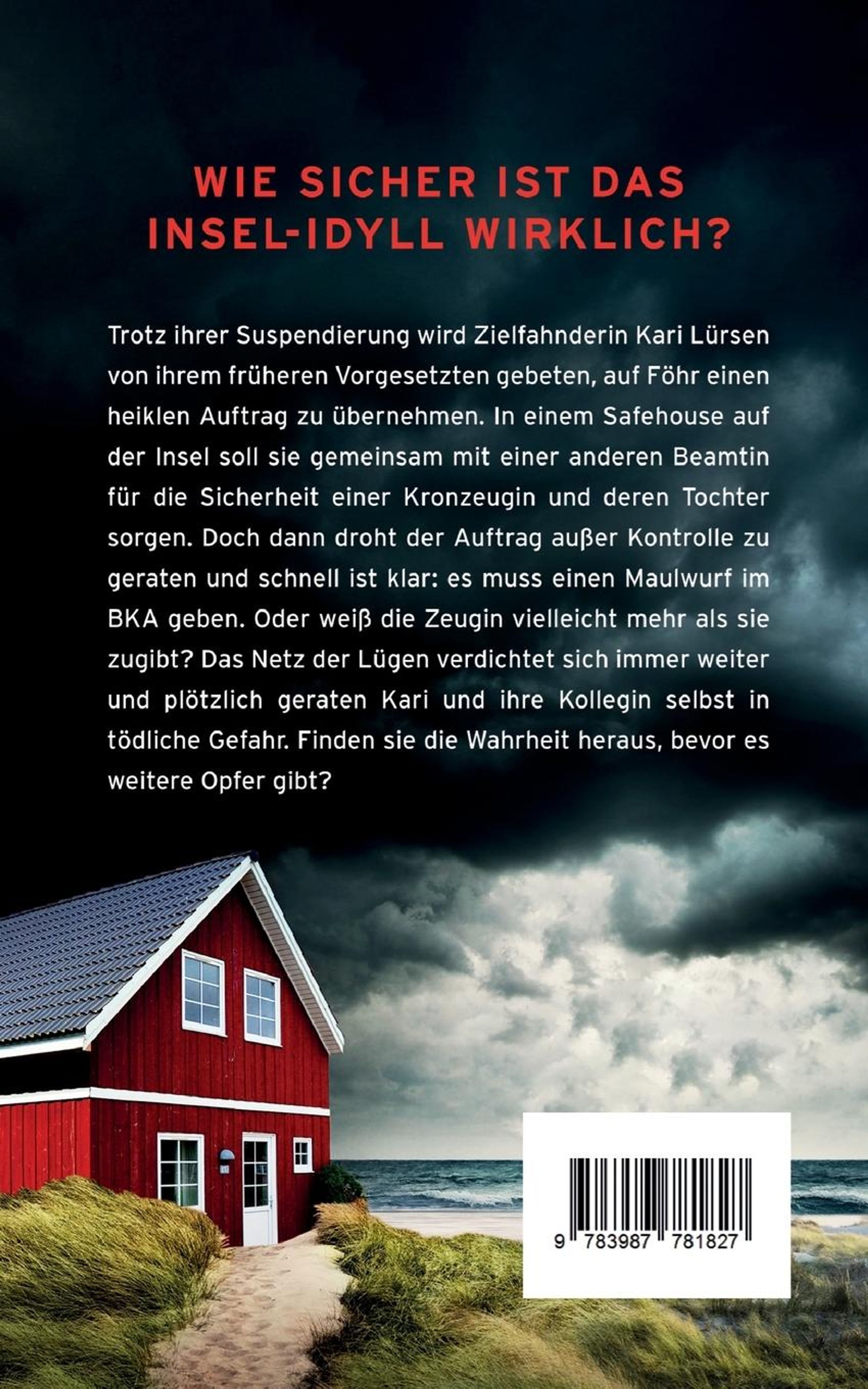 Wie sicher ist das Insel-Idyll wirklich? Der fesselnde zweite Teil der Nordseekrimi-Reihe Trotz ihrer Suspendierung wird Zielfahnderin Kari Lürsen von ihrem früheren Vorgesetzten gebeten, auf Föhr einen heiklen Auftrag zu übernehmen. In einem Safehouse auf der Insel soll sie gemeinsam mit einer anderen Beamtin für die Sicherheit einer Kronzeugin und deren Tochter sorgen. Doch dann droht der Auftrag außer Kontrolle zu geraten und schnell ist klar: es muss einen Maulwurf im BKA geben. Oder weiß die Zeugin vielleicht mehr als sie zugibt? Das Netz der Lügen verdichtet sich immer weiter und plötzlich geraten Kari und ihre Kollegin selbst in tödliche Gefahr. Finden sie die Wahrheit heraus, bevor es weitere Opfer gibt? Weitere Titel dieser Reihe Tod auf Föhr (ISBN: 9783987780677)