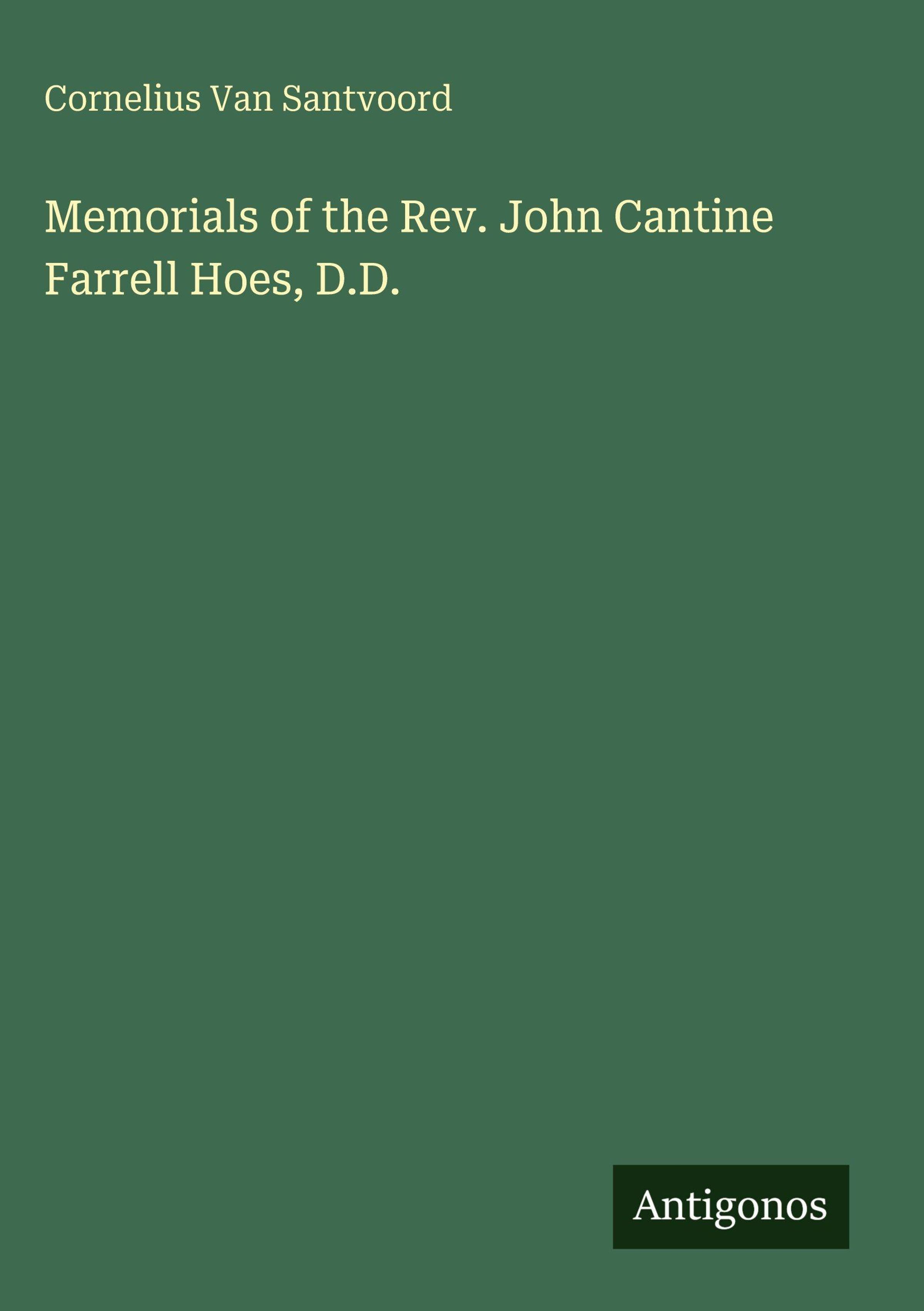 Cornelius Van Santvoord: Memorials of the Rev. John Cantine Farrell Hoes, D.D., Gebunden