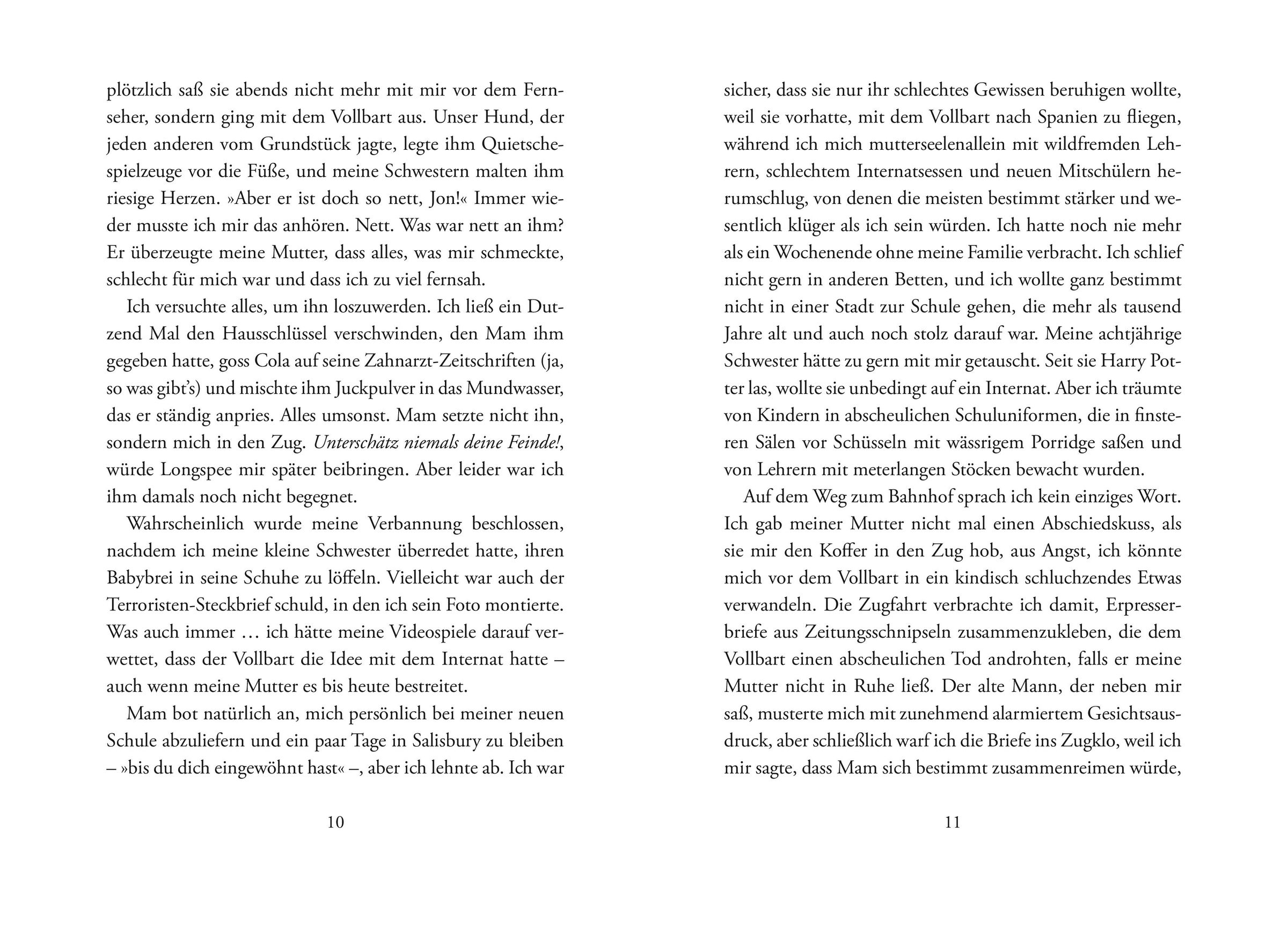 In "Geisterritter" von Cornelia Funke wird der junge Jon Whitcroft unfreiwillig zum Protagonisten einer übernatürlichen Geschichte, als er gegen seinen Willen auf ein Internat in Salisbury geschickt wird. Sein Leben nimmt eine dramatische Wendung, als ihm eines Nachts drei rachsüchtige Geister erscheinen, die es auf sein Leben abgesehen haben. Diese Geister, angeführt von Lord Stourton, einem historischen Feind seiner Familie, schwören Rache für ein jahrhundertealtes Unrecht. In seiner Verzweiflung findet Jon Hilfe in Ella Littlejohn und ihrer Großmutter Zelda, die über Wissen und Weisheit im Umgang mit Geistern verfügen. Gemeinsam rufen sie den Geisterritter Sir William Longspee herbei, der Jon beisteht und gleichzeitig seine eigene Erlösung in dieser ungewöhnlichen Freundschaft findet. Die Geschichte verwebt geschickt historische Elemente mit der modernen Herausforderung, sich in einer neuen und feindseligen Umgebung zurechtzufinden, und bietet eine fesselnde Mischung aus Spannung, Abenteuer und der Bedeutung von Mut und Freundschaft.