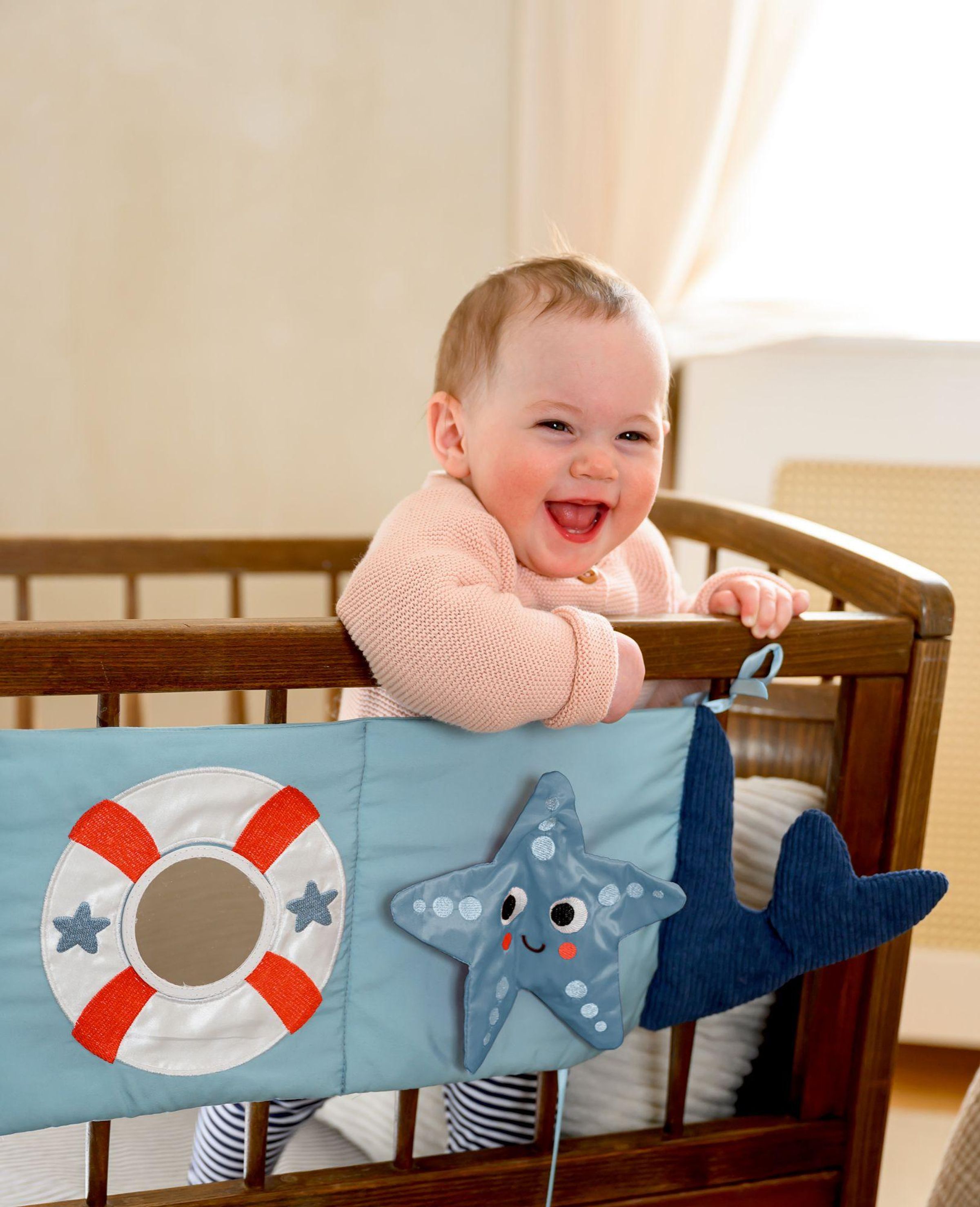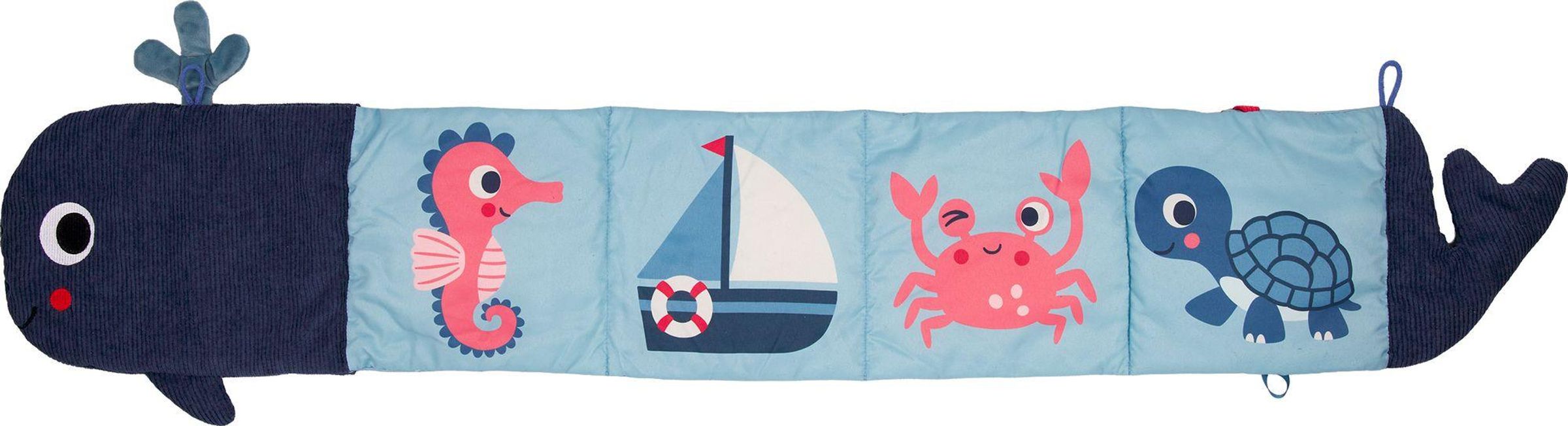 Das Activity-Kissen in Walform ist ein liebevoll gestaltetes Motorikspielzeug und zugleich Spiel- und Kuschelkissen in einem. Als weicher Begleiter unterstützt es Ihr Kind in den ersten Monaten und lädt zum Fühlen, Greifen und Entdecken ein. Spiegel, Knisterfolie sowie weicher Cord und kuscheliger Nicki-Velours fördern die sensorische Entwicklung und sorgen für abwechslungsreichen Spielspaß. Ein hochwertiges Stoffspielzeug für Babys ab 6 Monaten - auch ideal als Geschenk zur Geburt.