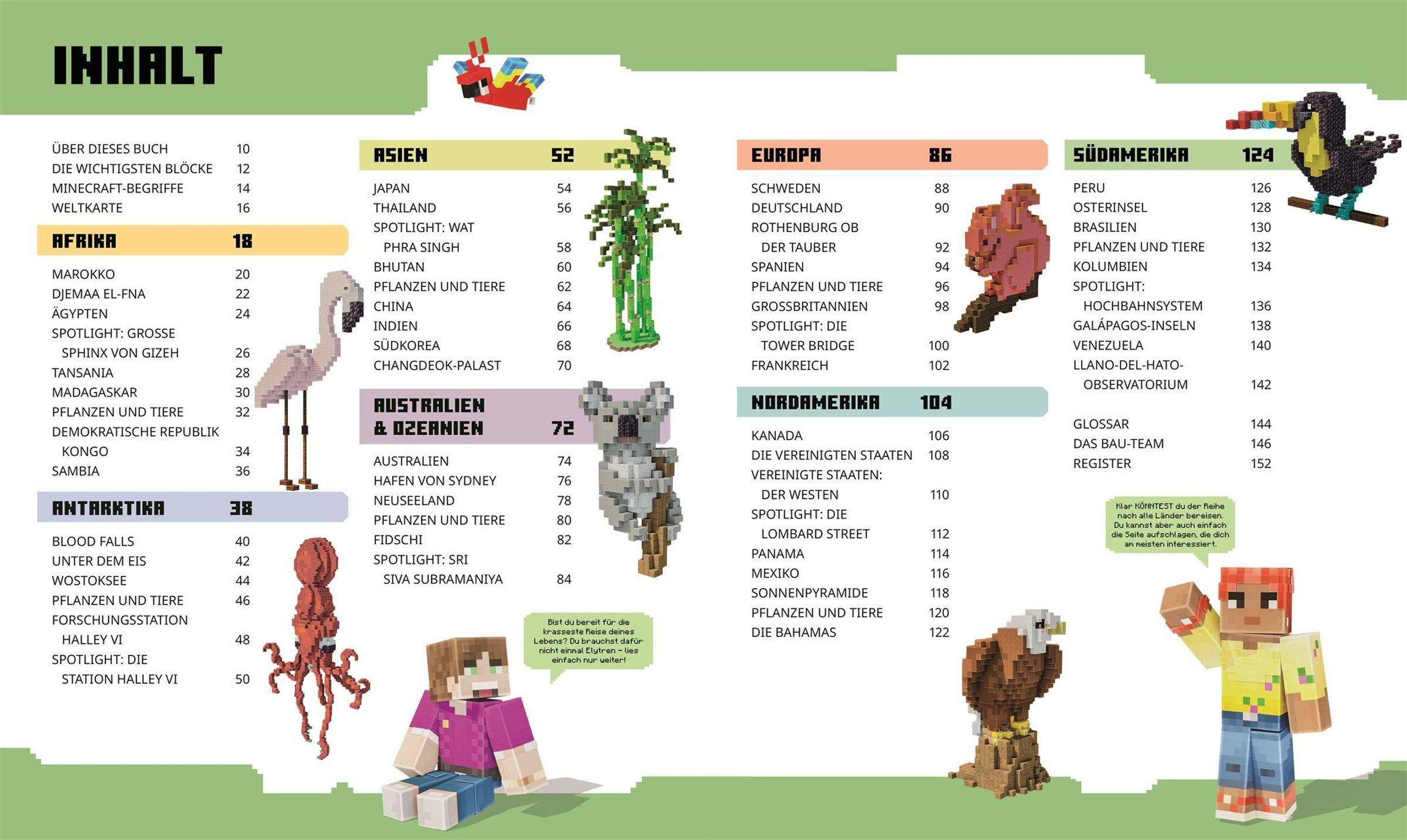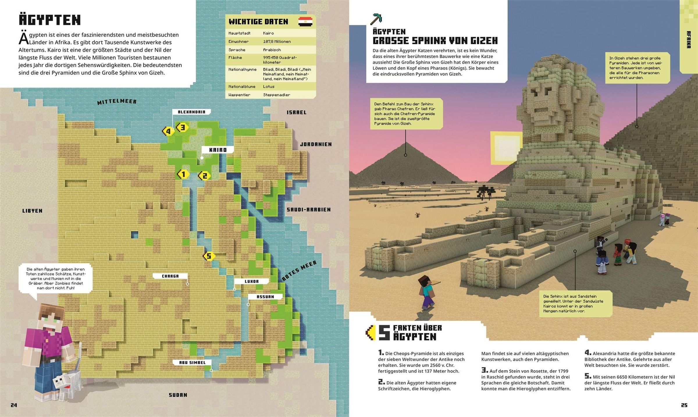 Neben den über 60 blocktastischen Ideen zum Nachbauen begeistert der offizielle Minecraft Guide mit detailreichen Karten im Block-Stil, spannenden Länder-Steckbriefen und unzähligen Fun Facts . So wird aus dem Weltatlas eine abenteuerliche Expedition rund um die Erde, die reale Schauplätze und virtuelle Blockwelten auf einzigartige Weise verbindet!