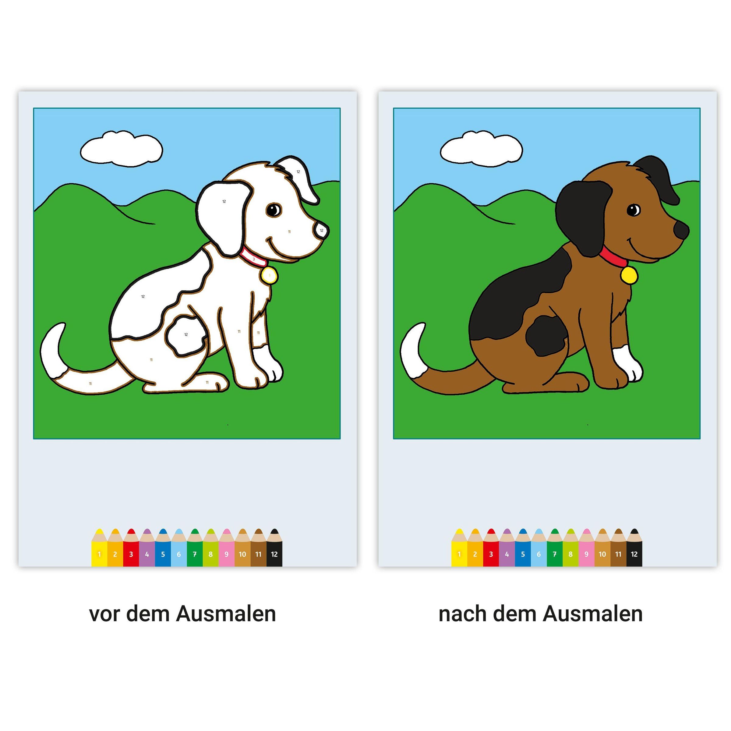 Kinderleicht Ausmalen - dieses Malbuch enthält 24 niedliche Motive rund um das Thema Tiere: Welpen, Igel, Hasen. Kinder ab 3 Jahren malen die nummerierten Felder aus, die farbigen Konturen helfen bei der Auswahl der Farben. So entstehen im Handumdrehen perfekte Kunstwerke. Die Farbpalette der Motive umfasst 12 Farben.