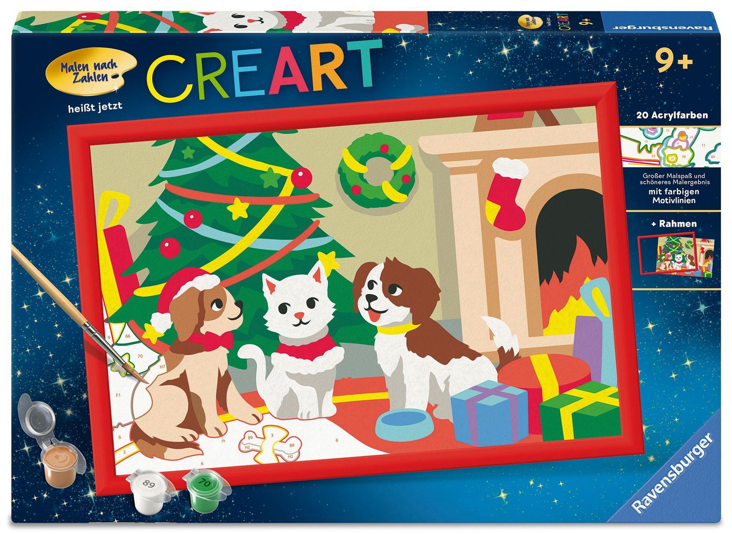 Farbige Motivlinien: Größerer Malspaß & ein schöneres Ergebnis! Dank der farbigen Motivlinien, können die Kinder das ganze Motiv Pfoten-Weihnachten und die Farben schneller erkennen. Der Pinsel hat eine gute Führung und so entsteht ein perfektes Bild. Die schönen Motive zum Ausmalen sind eine tolle Geschenkidee für Kinder ab 9 Jahren und eine schöne Dekoration. In diesem Malset sind bereits 20 fertig gemischte Acrylfarben enthalten. Verpackungsdesign kann abweichen. Mit Malen nach Zahlen von Ravensburger lernen die Kinder Flächen sorgfältig auszumalen, ihr Maltalent zu verbessern sowie feinmotorische Fähigkeiten zu entwickeln. Am Ende stehen Freude, Stolz und ein Erfolgserlebnis, das die Lust am Weitermalen weckt. Die Motive sind altersgerecht in drei Schwierigkeitsstufen umgesetzt: von einfachen Bildern mit wenigen, großen Malflächen bis hin zu Bildern mit vielen, kleinen Malflächen für Fortgeschrittene. Jedes Malset enthält alles, was Künstler zum Malen brauchen und es ist kein Mischen der Farben notwendig. Das Ravensburger Malen nach Zahlen Programm bietet eine große Motivauswahl für Kinder und Erwachsene.