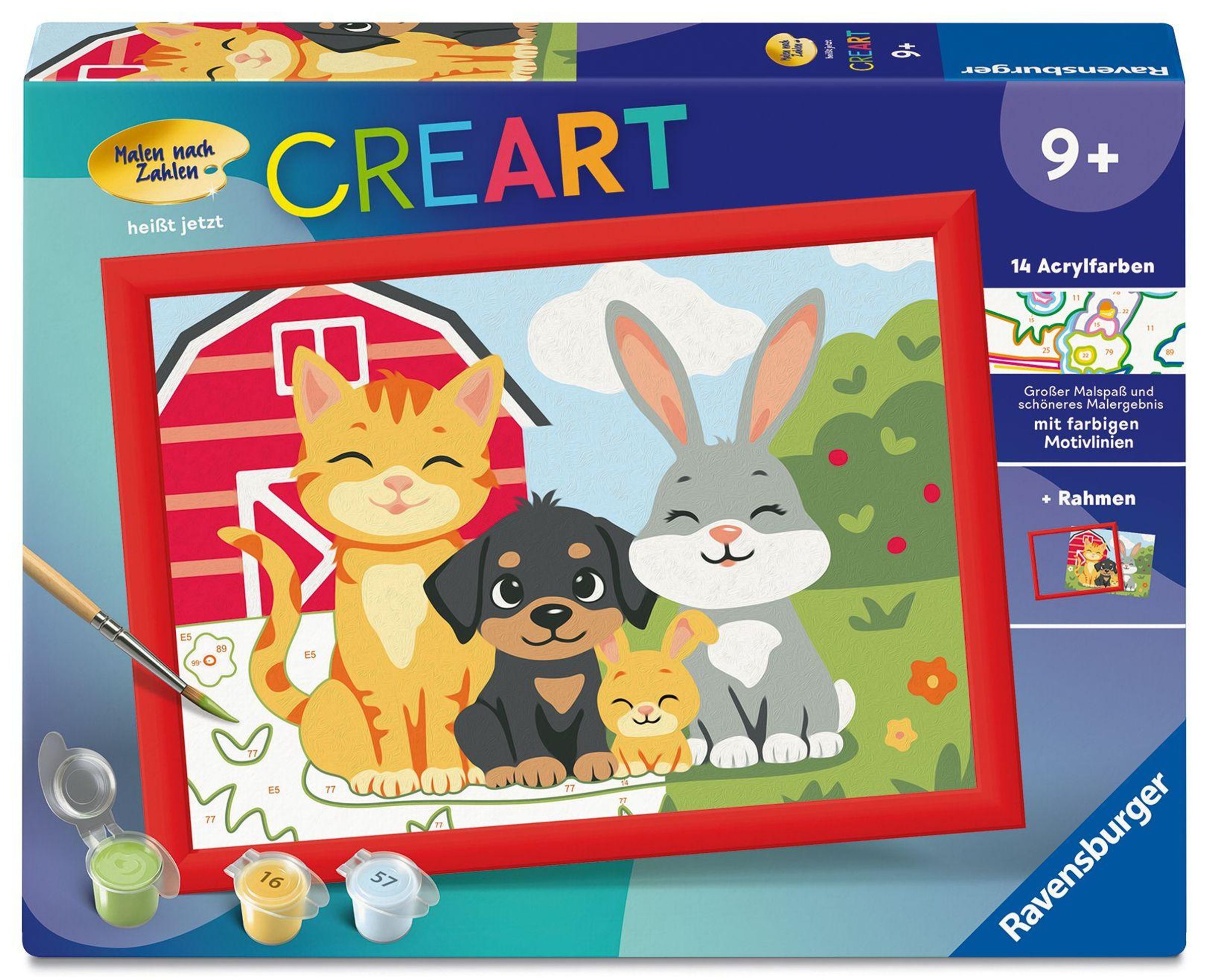 Farbige Motivlinien: Größerer Malspaß & ein schöneres Ergebnis! Dank der farbigen Motivlinien, können die Kinder das ganze Motiv Pfotenbande und die Farben schneller erkennen. Der Pinsel hat eine gute Führung und so entsteht ein perfektes Bild. Die schönen Motive zum Ausmalen sind eine tolle Geschenkidee für Kinder ab 9 Jahren und eine schöne Dekoration. In diesem Malset sind bereits 14 fertig gemischte Acrylfarben enthalten. Verpackungsdesign kann abweichen. Mit Malen nach Zahlen von Ravensburger lernen die Kinder Flächen sorgfältig auszumalen, ihr Maltalent zu verbessern sowie feinmotorische Fähigkeiten zu entwickeln. Am Ende stehen Freude, Stolz und ein Erfolgserlebnis, das die Lust am Weitermalen weckt. Die Motive sind altersgerecht in drei Schwierigkeitsstufen umgesetzt: von einfachen Bildern mit wenigen, großen Malflächen bis hin zu Bildern mit vielen, kleinen Malflächen für Fortgeschrittene. Jedes Malset enthält alles, was Künstler zum Malen brauchen und es ist kein Mischen der Farben notwendig. Das Ravensburger Malen nach Zahlen Programm bietet eine große Motivauswahl für Kinder und Erwachsene.