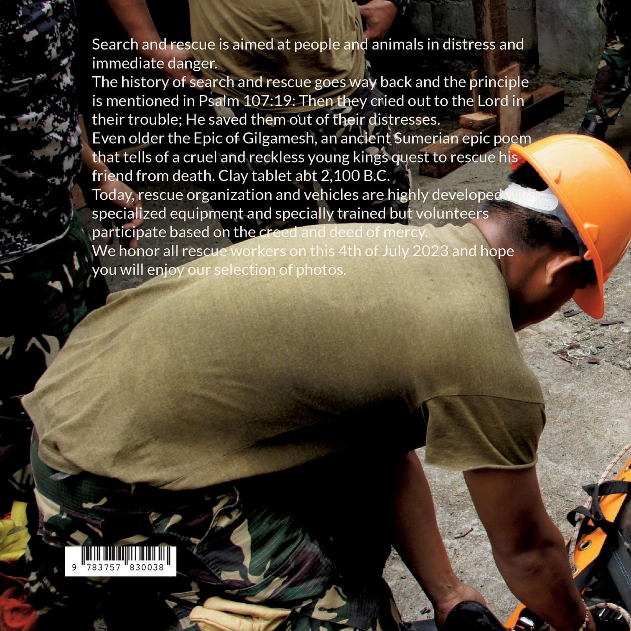 Search and rescue is aimed at people and animals in distress and immediate danger. The history of search and rescue goes way back and the principle is mentioned in Psalm 107: 19: Then they cried out to the Lord in their trouble; He saved them out of their distresses. Even older the Epic of Gilgamesh, an ancient Sumerian epic poem that tells of a cruel and reckless young kings quest to rescue his friend from death. Clay tablet abt 2, 100 B. C. Today, rescue organization and vehicles are highly developed with specialized equipment and specially trained but volunteers participate based on the creed and deed of mercy. We honor all rescue workers on this 4th of July 2023 and hope you will enjoy our selection of photos.