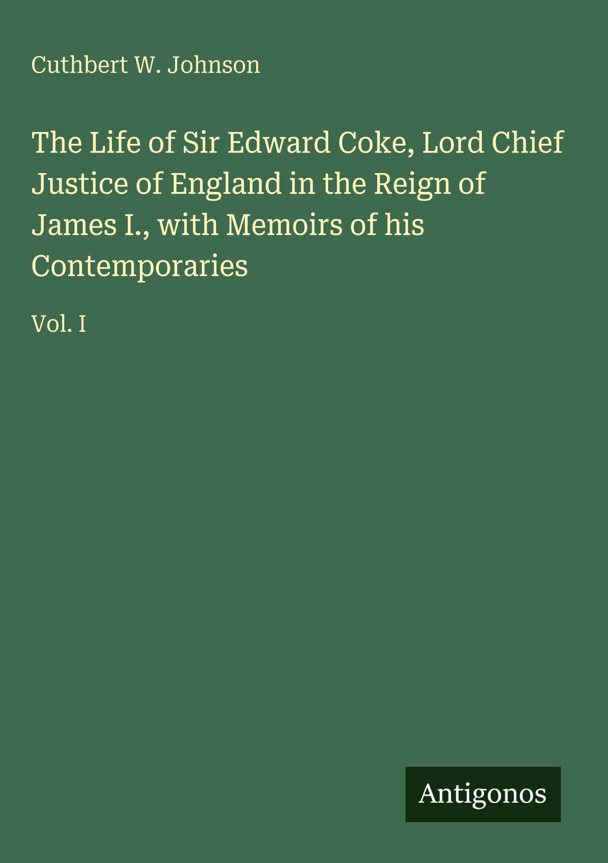 The Life of Sir Edward Coke, Lord Chief Justice of England in the Reign of James I., with Memoirs of his Contemporaries