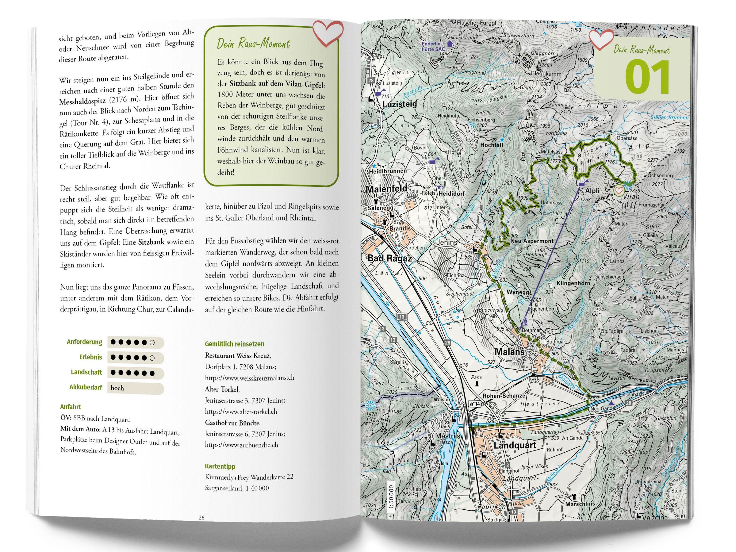 E-Bike- & Hike-Touren in Graubünden: Ganz ohne technische Voraussetzungen auf dem Bike erschliessen die Wandertouren mit An- und Abfahrten auf dem E-MTB komfortabel abgelegene Ziele und höhere Lagen. Entwickelt wurden sie vom Wanderguide und Bike-Reiseleiter Cyrill Locher. Im Mittelpunkt stehen Raus-Momente, die zu Entspannung und Entschleunigung führen, eine Verbindung zur Natur aufbauen und das Highlight einer jeden der abwechslungsreichen 25 Touren sind. Die detaillierten Wegbeschreibungen werden ergänzt von Höhenprofilen, Kartendetails, praktischen Infos wie Einkehr und Anfahrt sowie herunterladbaren GPS-Daten in Form von GPX-Tracks. Also nichts wie raus an die frische Luft!
