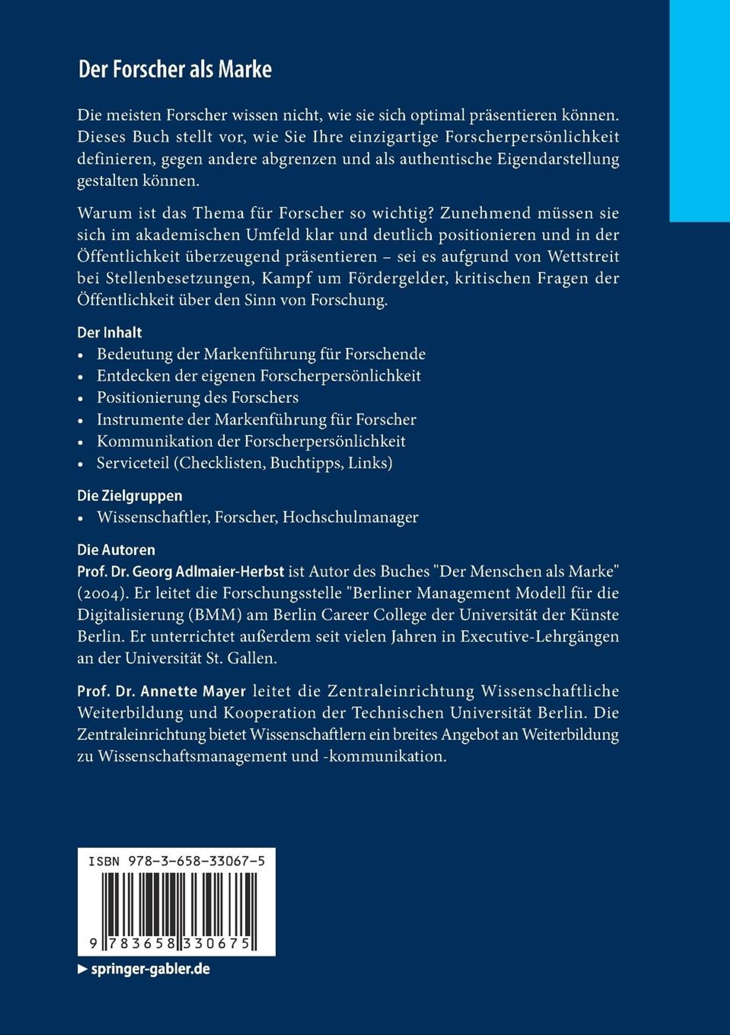 Einleitung.- Einführung.- Die Forscherpersönlichkeit.- Bezugsgruppen des Forschers.- Vermitteln der Markenpersönlichkeit.- Bekanntheit und Image als Ziel der Markenführung.- Das Konzept für Ihre Markenführung.