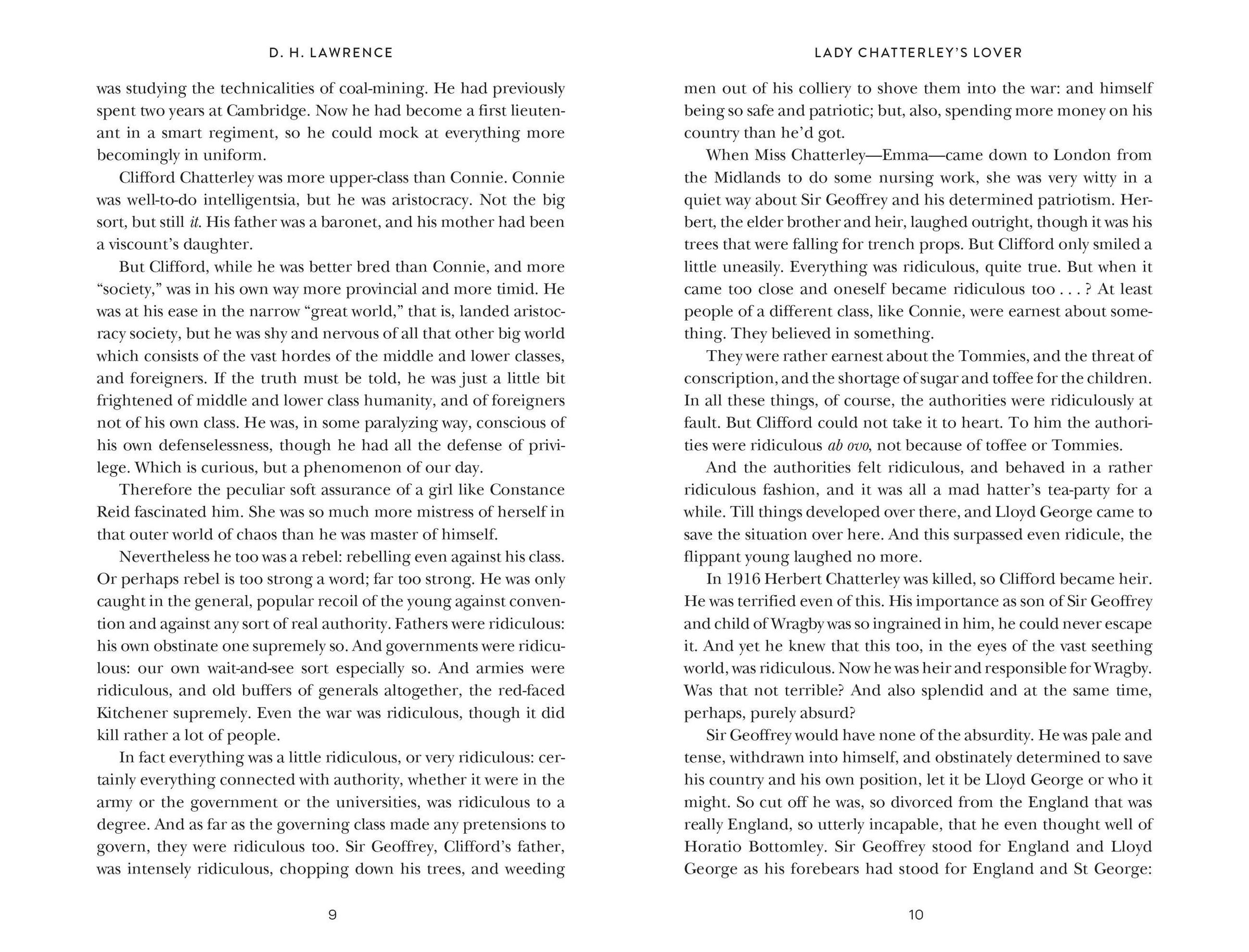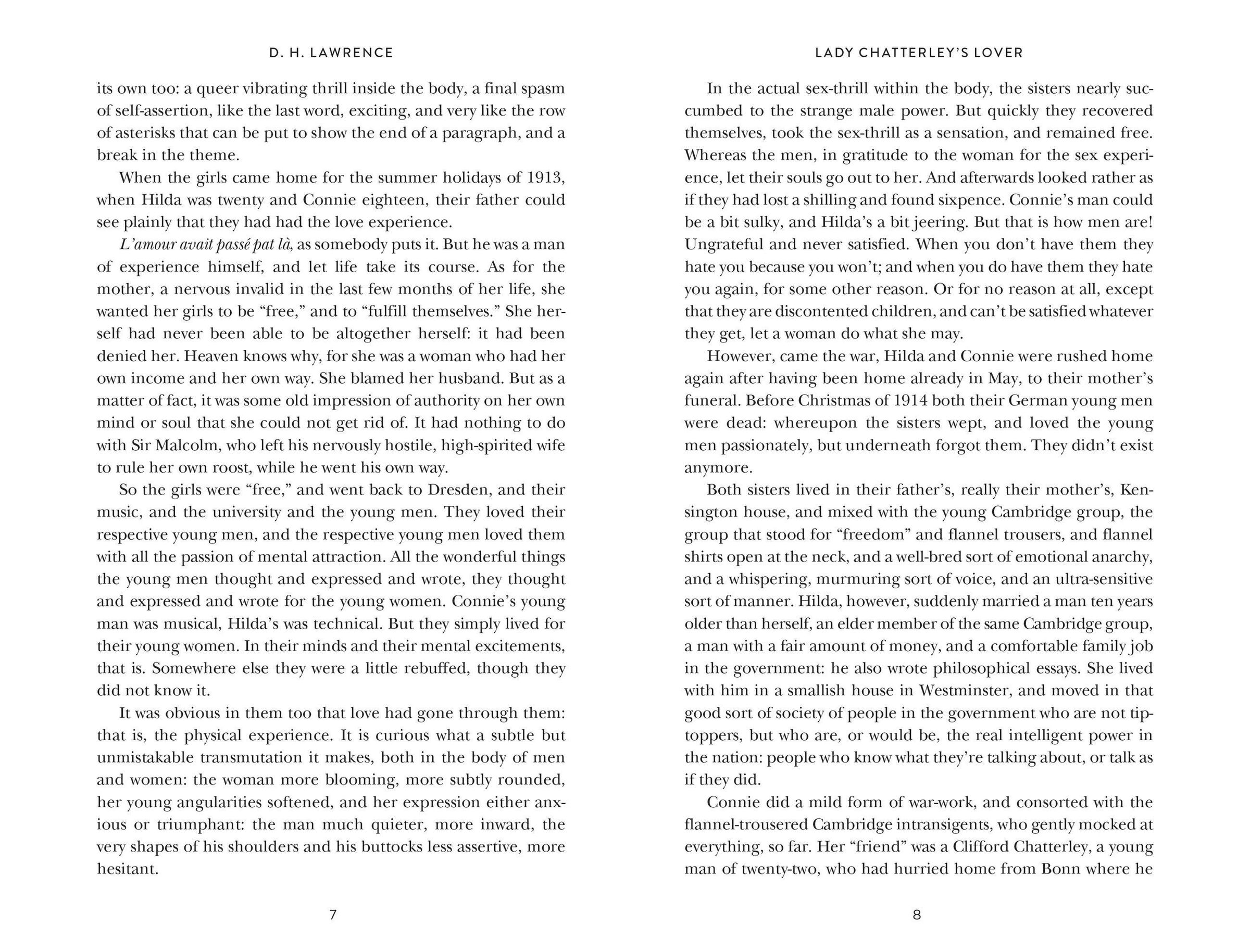 Inspired by the long-standing affair between D. H. Lawrence's German wife and an Italian peasant, Lady Chatterley's Loverfollows the intense passions of Constance Chatterley. Trapped in an unhappy marriage to an aristocrat whose war wounds have left him paralyzed and impotent, Constance enters into a liaison with the gamekeeper Mellors. Originally banned in multiple countries, Lady Chatterley's Lover is an unapologetic portrayal of pleasure recognized as Lawrence's "best novel" (Anais Nin) and "one of the most important works of fiction of the century" (Archibald MacLeish).