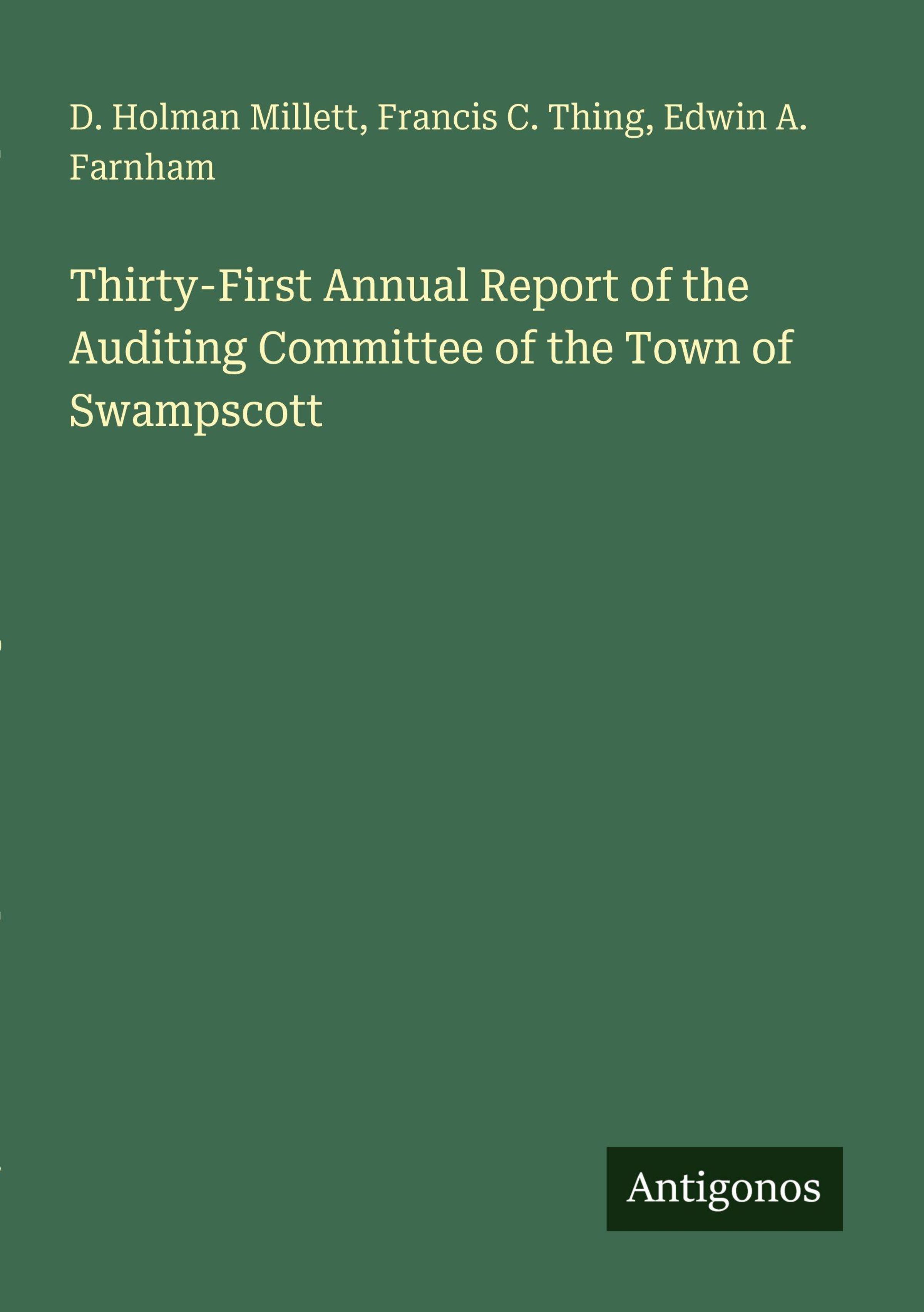D. Holman Millett: Thirty-First Annual Report of the Auditing Committee of the Town of Swampscott, Kartoniert / Broschiert