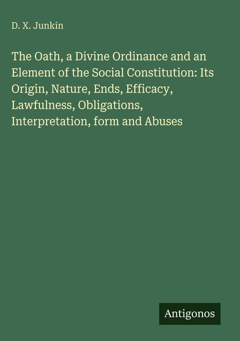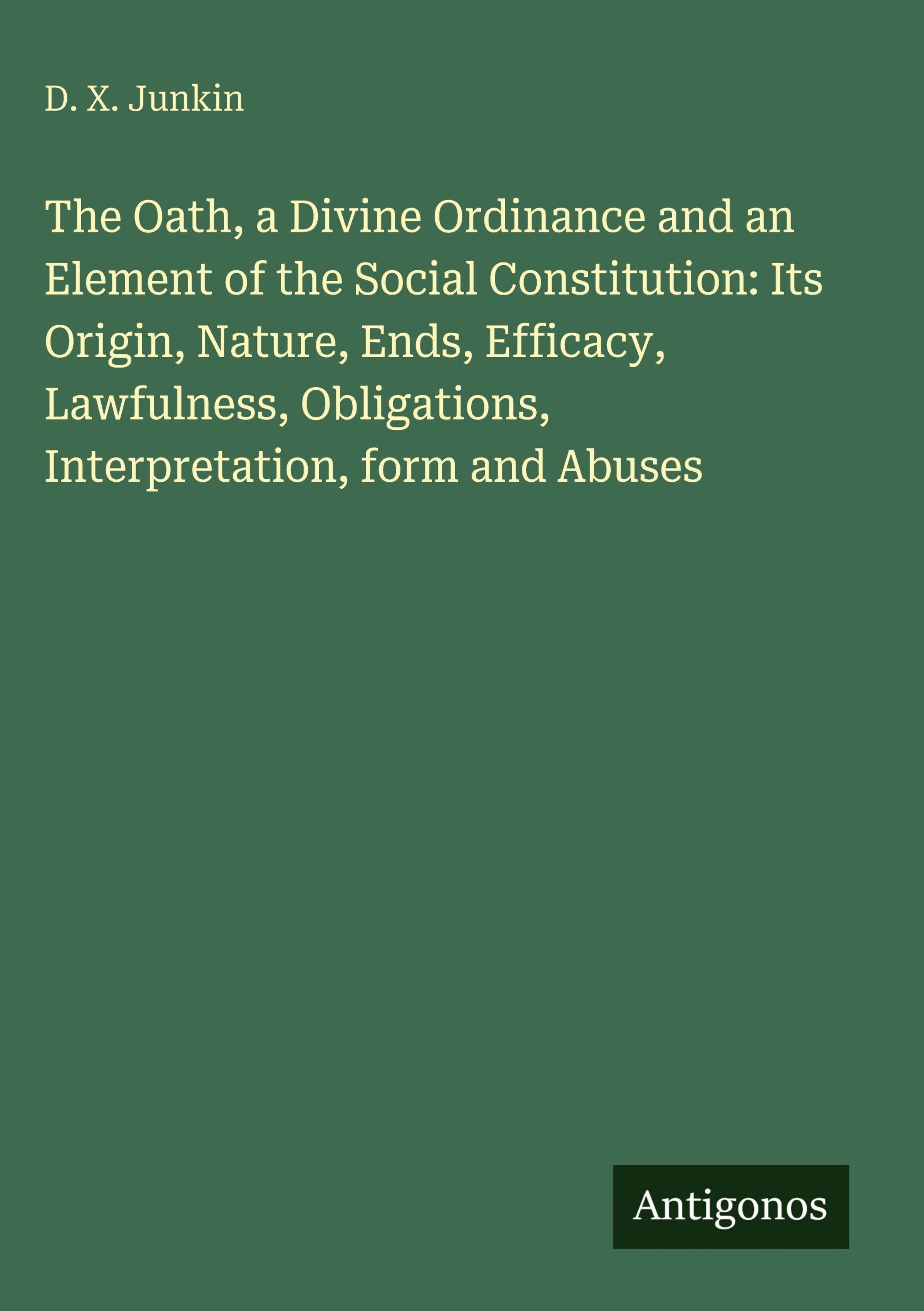 D. X. Junkin: The Oath, a Divine Ordinance and an Element of the Social Constitution: Its Origin, Nature, Ends,..., Gebunden