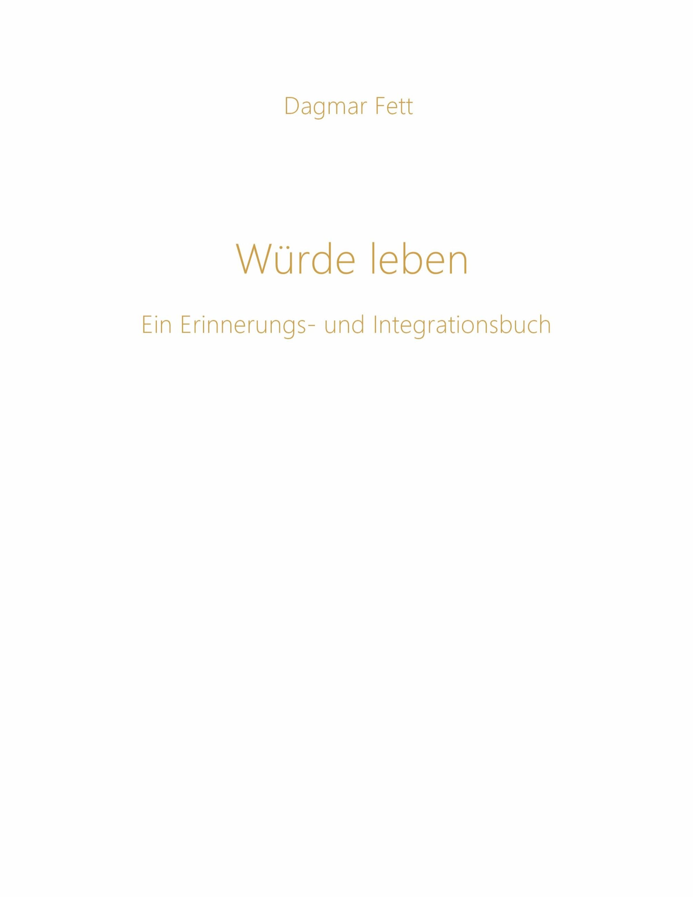 Dagmar Fett, "Würde leben", ein Erinnerungs- und Integrationsbuch. Schlichtes, elegantes Design auf weißem Hintergrund., Buch