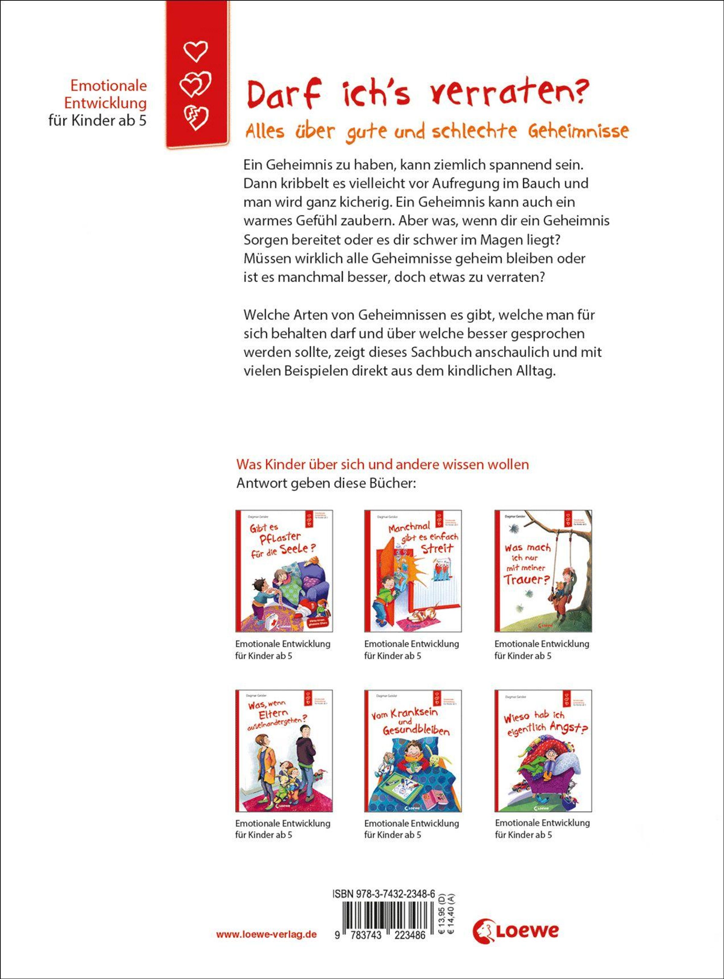 Welche Arten von Geheimnissen es gibt, welche man für sich behalten darf und über welche besser gesprochen werden sollte, zeigt dieses Sachbuch anschaulich und mit vielen Beispielen direkt aus dem kindlichen Alltag.