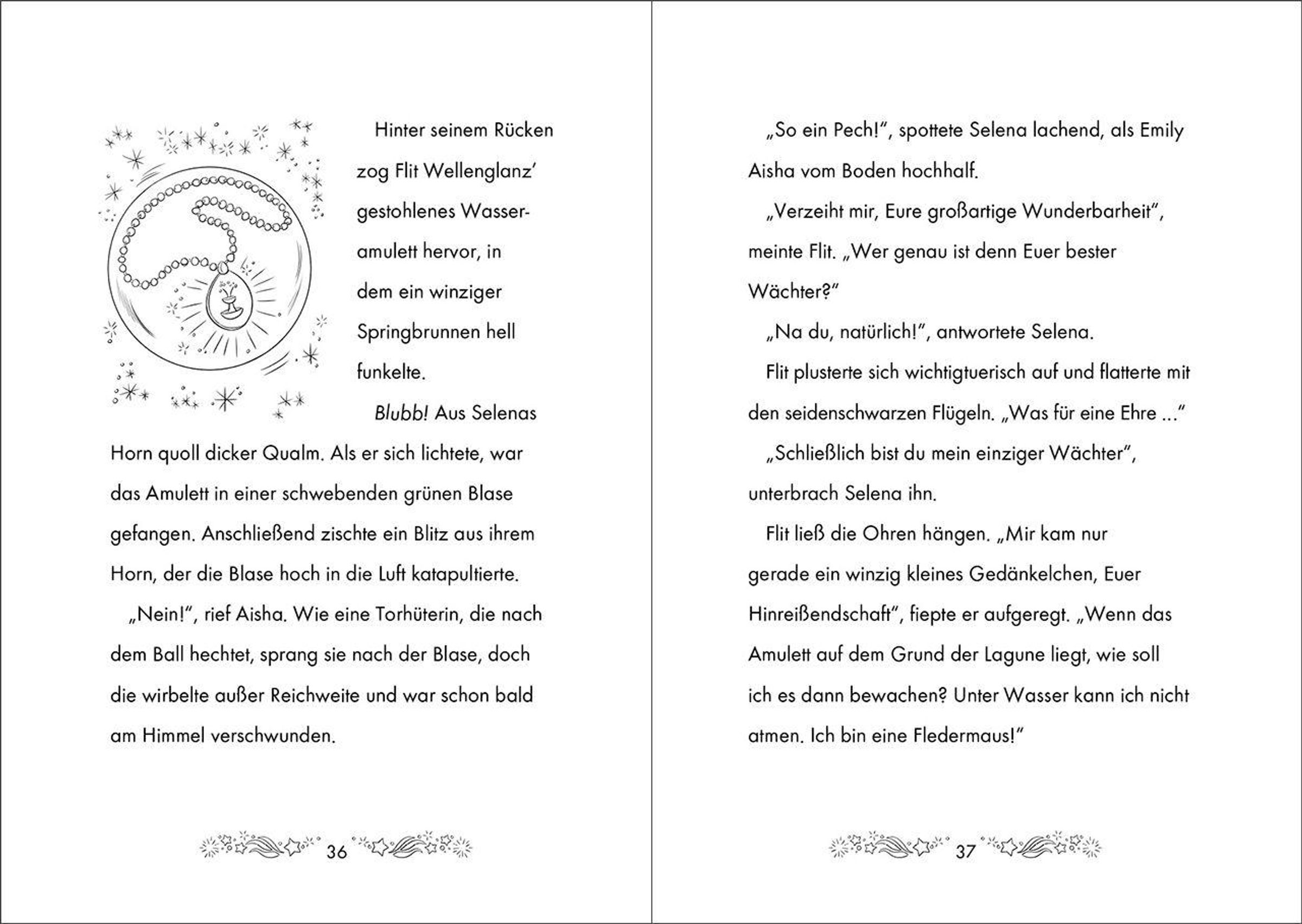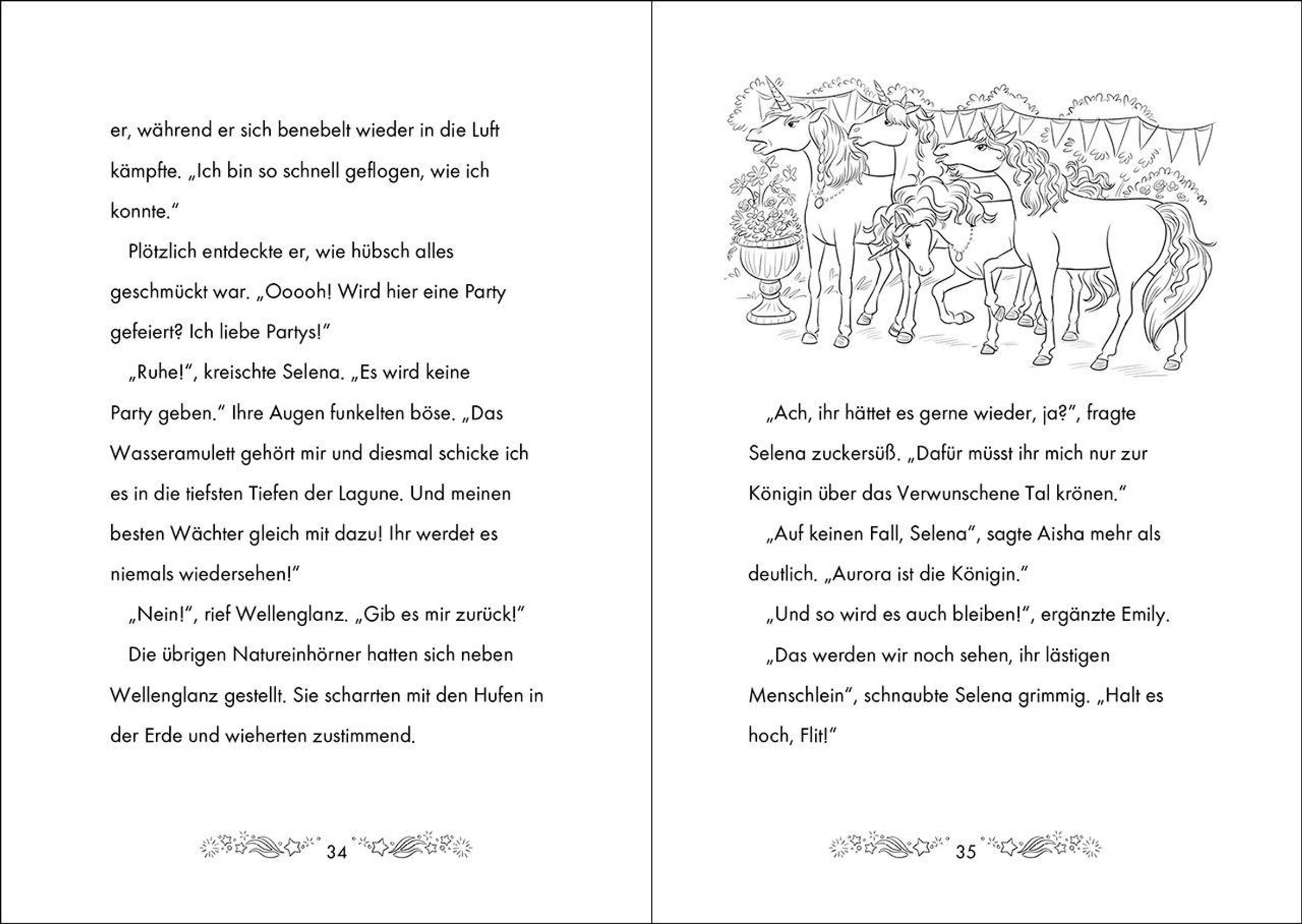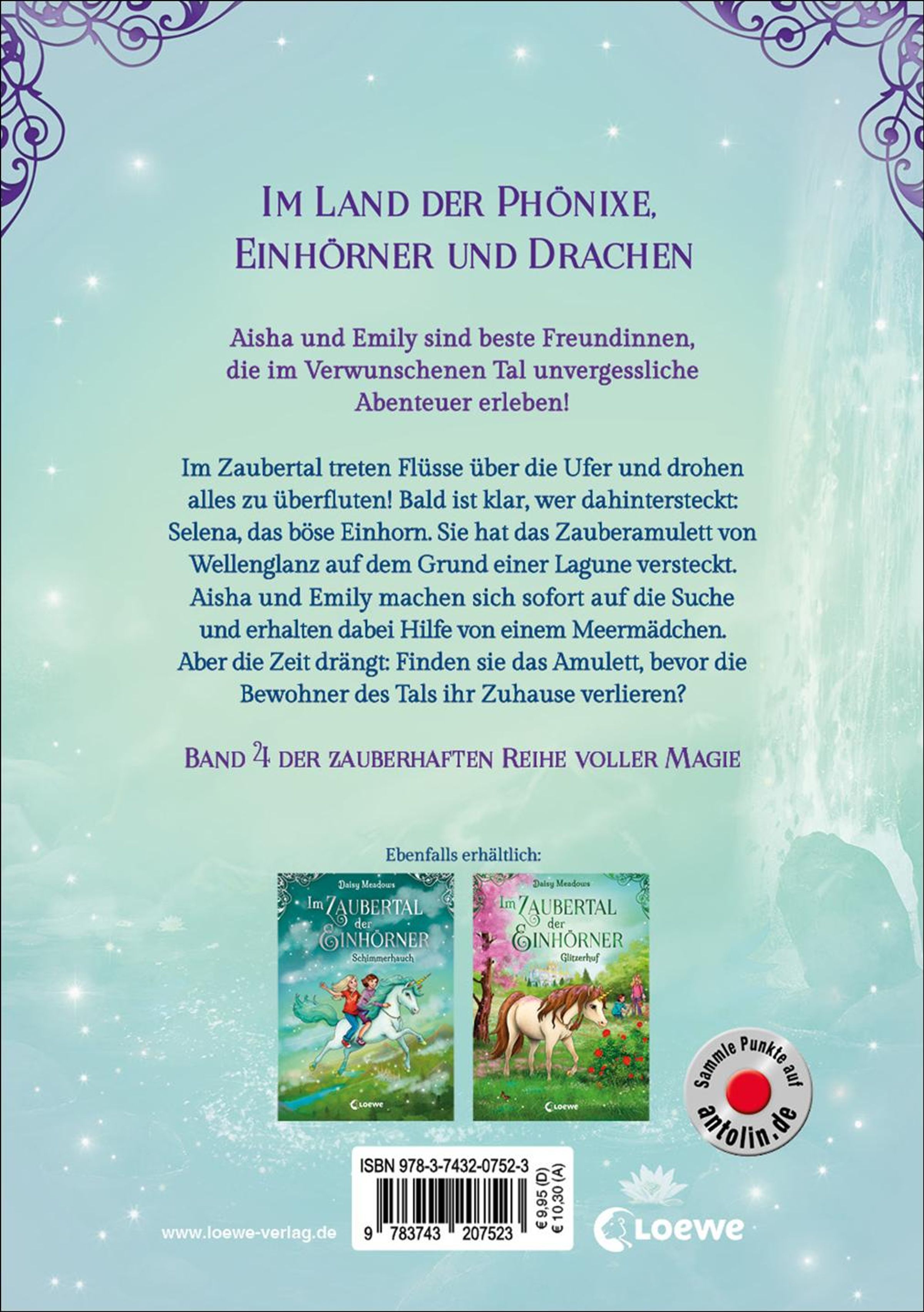 Im Zaubertal treten Flüsse über die Ufer und drohen, alles zu überfluten! Bald ist klar, wer dahintersteckt: Selena, das böse Einhorn, hat das Zauberamulett von Einhorn Wellenglanz auf dem Grund einer Lagune versteckt. Aisha und Emily machen sich sofort auf die Suche und erhalten dabei Hilfe von einem Meermädchen. Die Zeit drängt: Finden sie das Amulett, bevor die Bewohner des Tals ihr Zuhause verlieren?