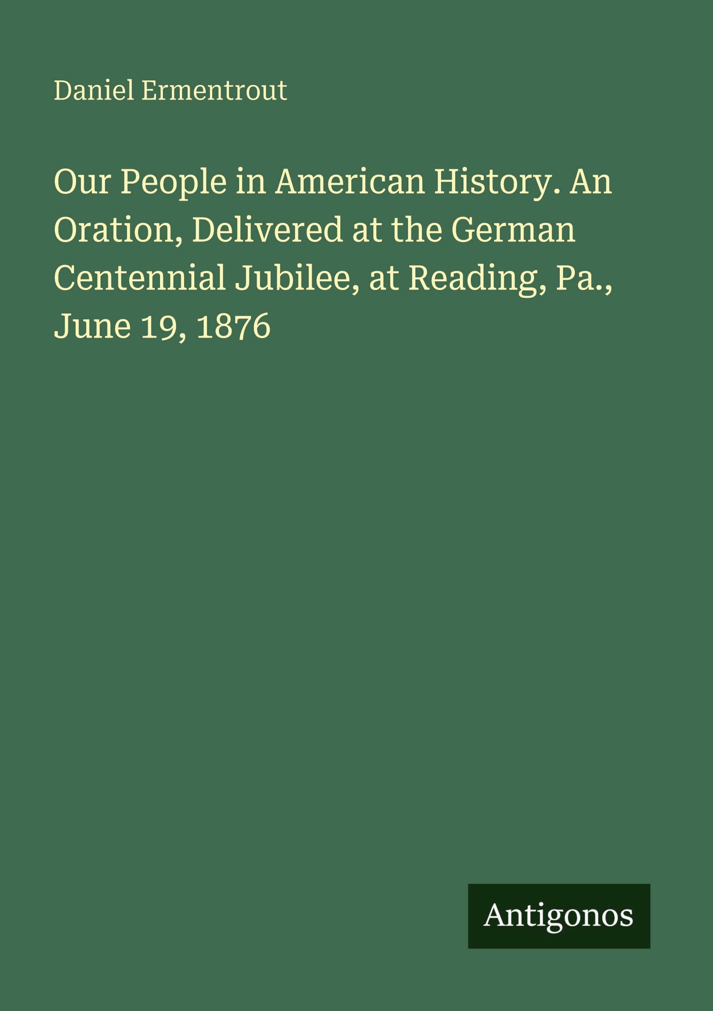 Our People in American History. An Oration, Delivered at the German Centennial Jubilee, at Reading, Pa., June 19, 1876