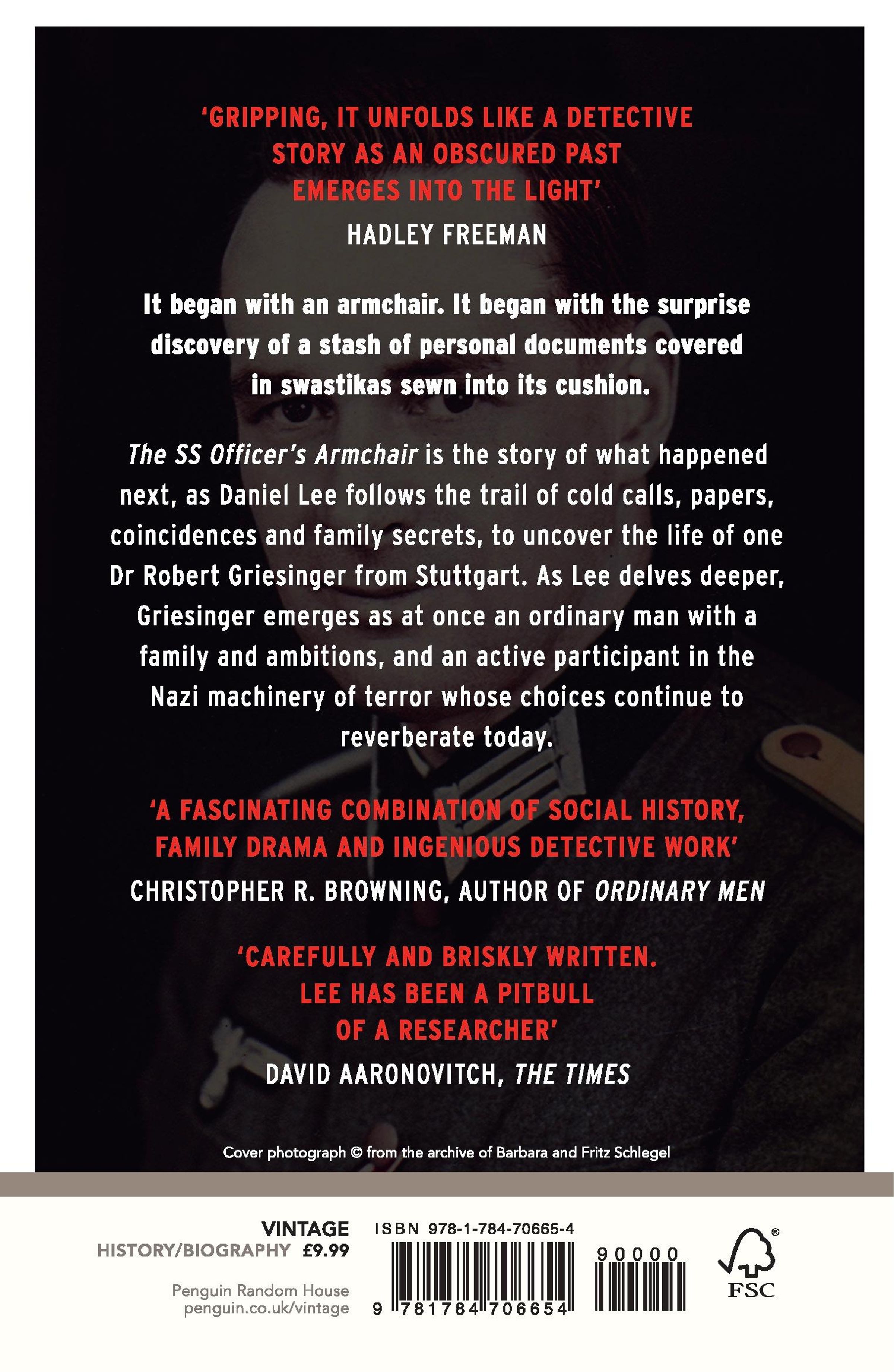 The SS Officer's Armchair is the story of what happened next, as Daniel Lee follows the trail of cold calls, documents, coincidences and family secrets, to uncover the life of one Dr Robert Griesinger from Stuttgart. As Lee delves deeper, Griesinger emerges as at once an ordinary man with a family and ambitions, and an active participant in the Nazi machinery of terror whose choices continue to reverberate today.